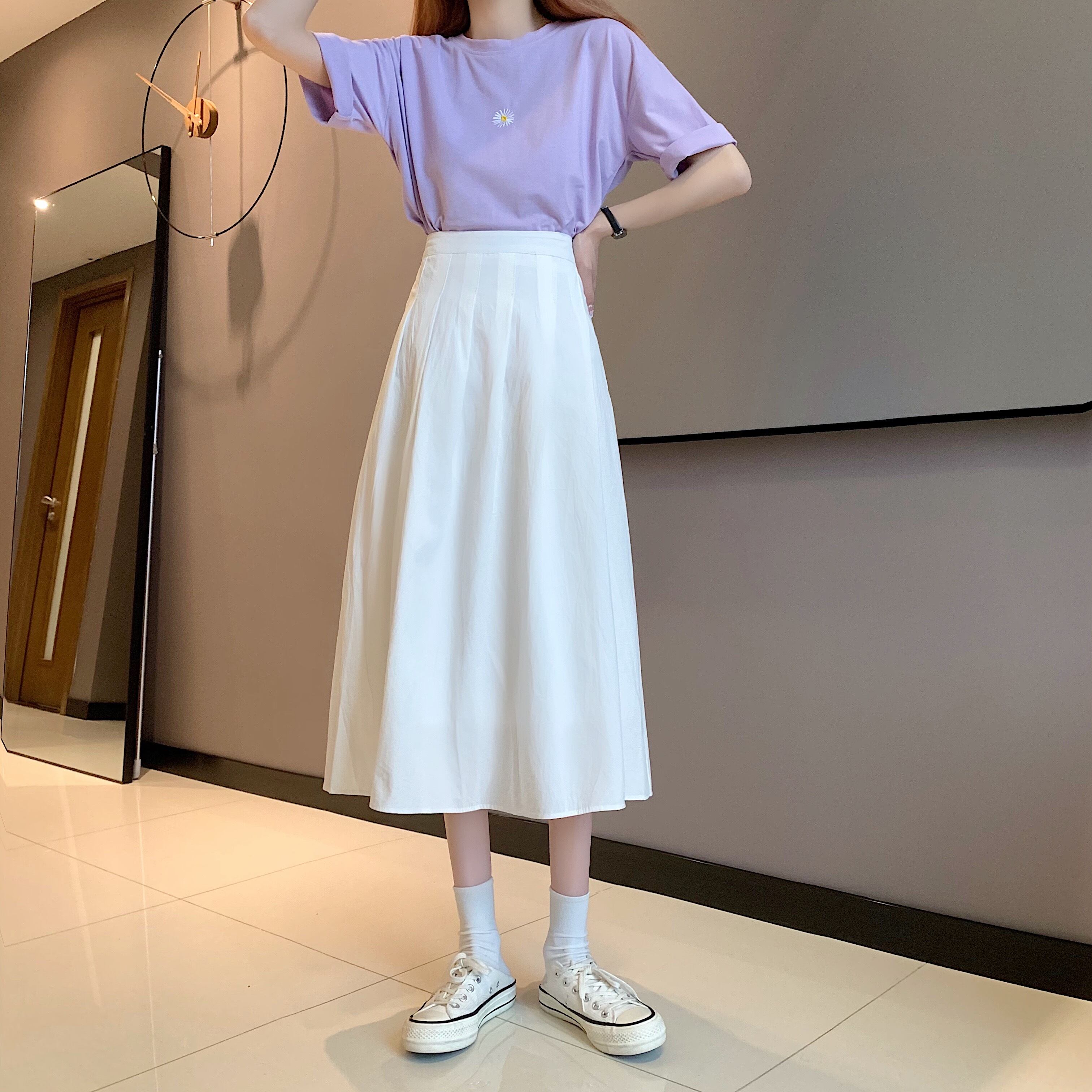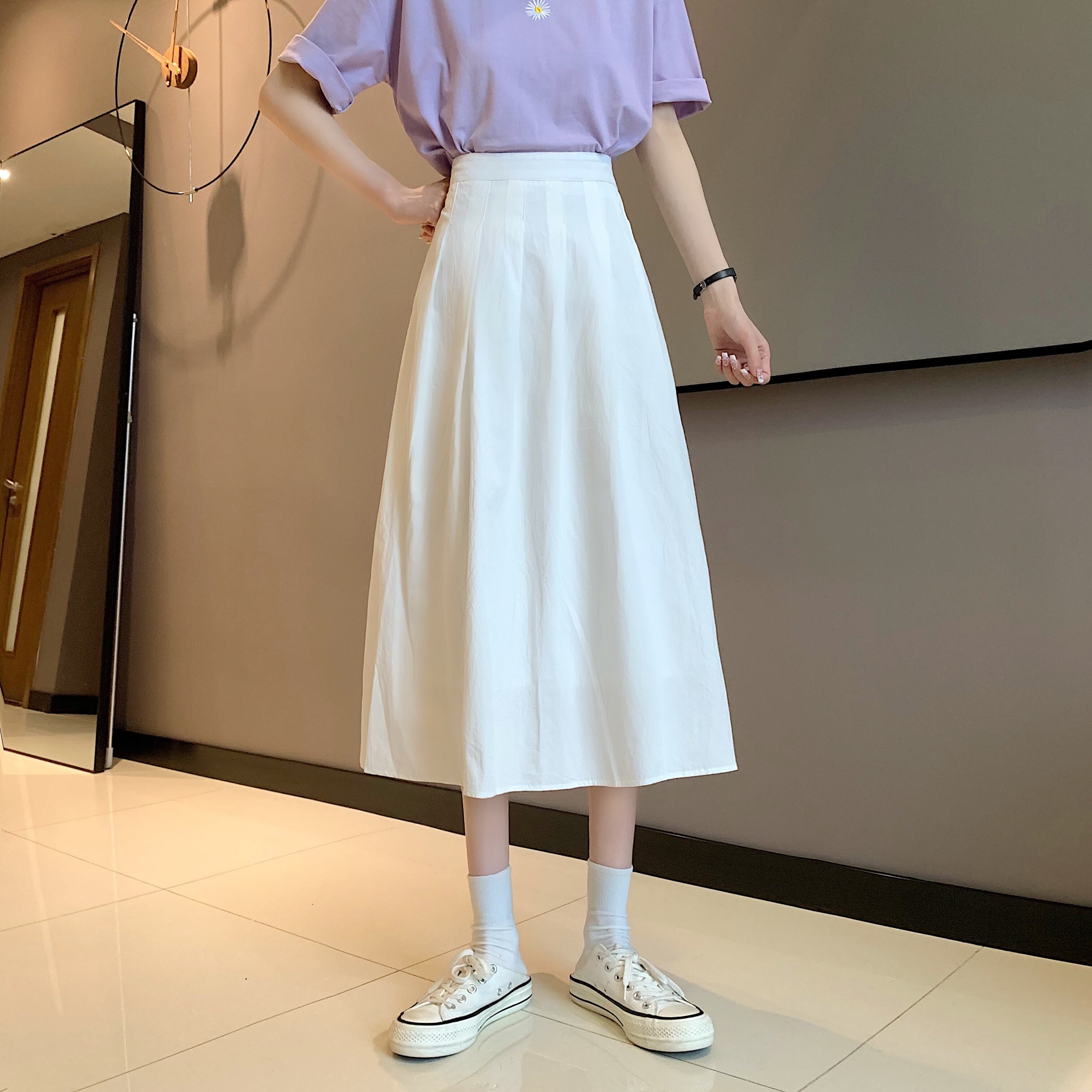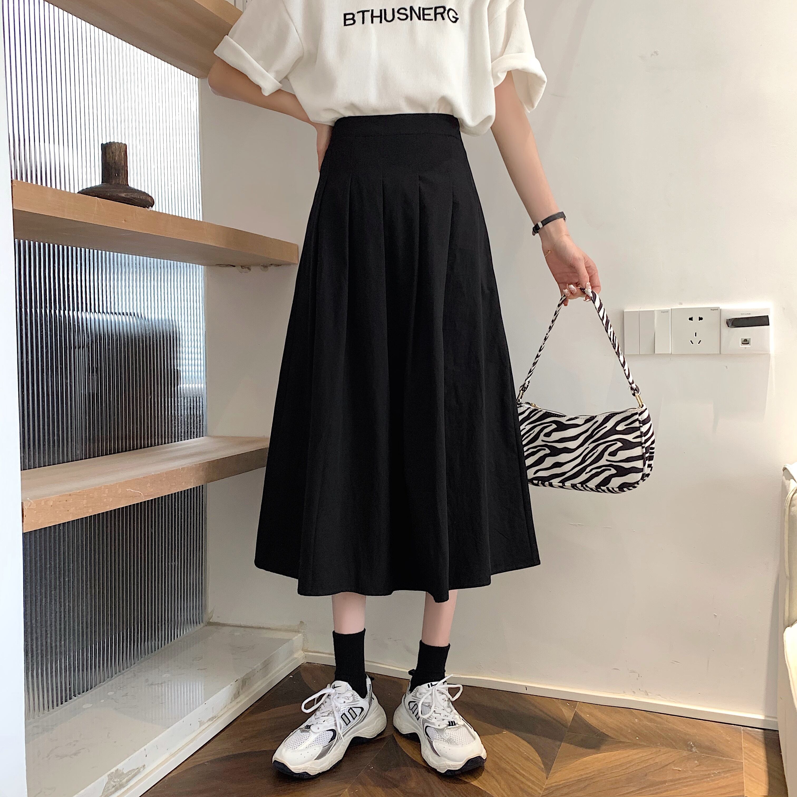 ホワイトスカート サマーAラインプリーツ薄手ハイウェストウェストブラック 夏物 1号婦人48783018935