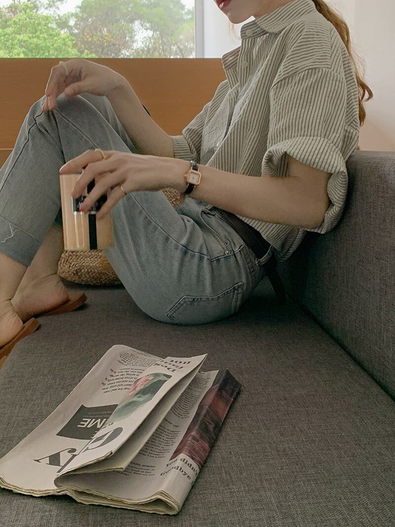 ストライプトップス サマー薄手ルーズスタンダードシャツ レトロ 夏物 1号婦人41042893764