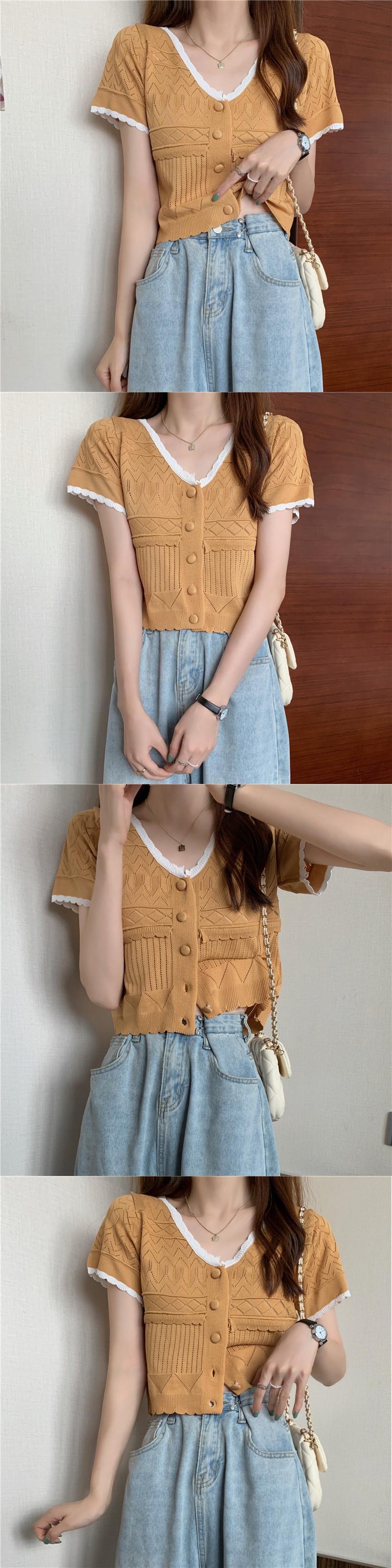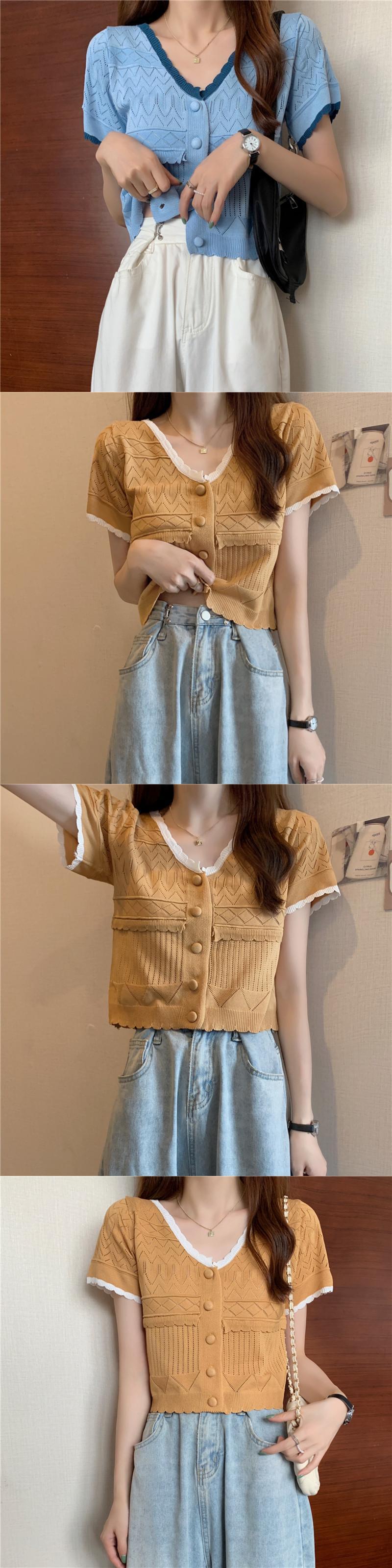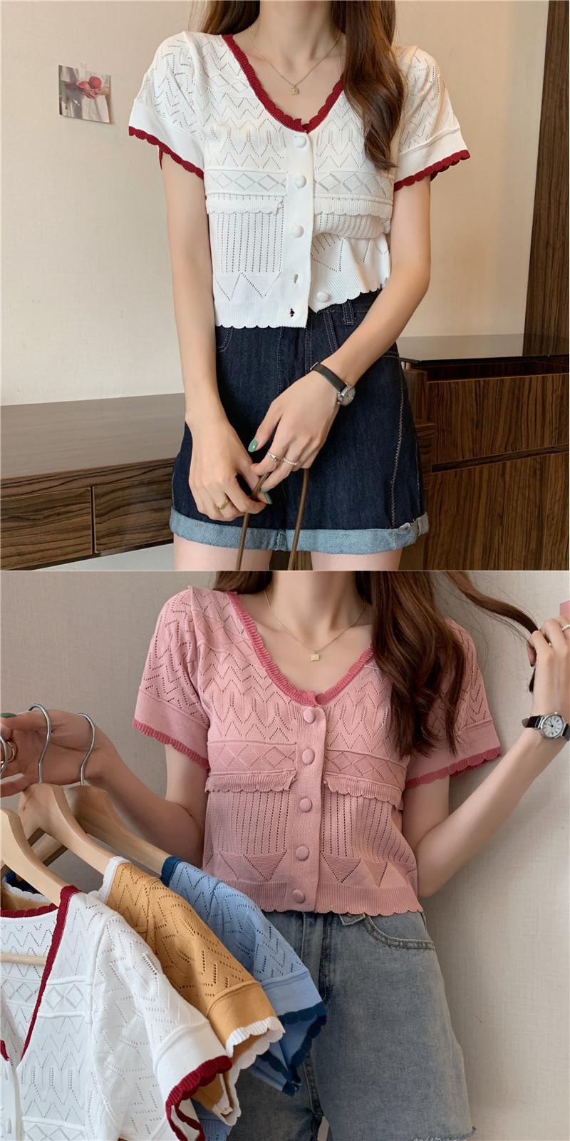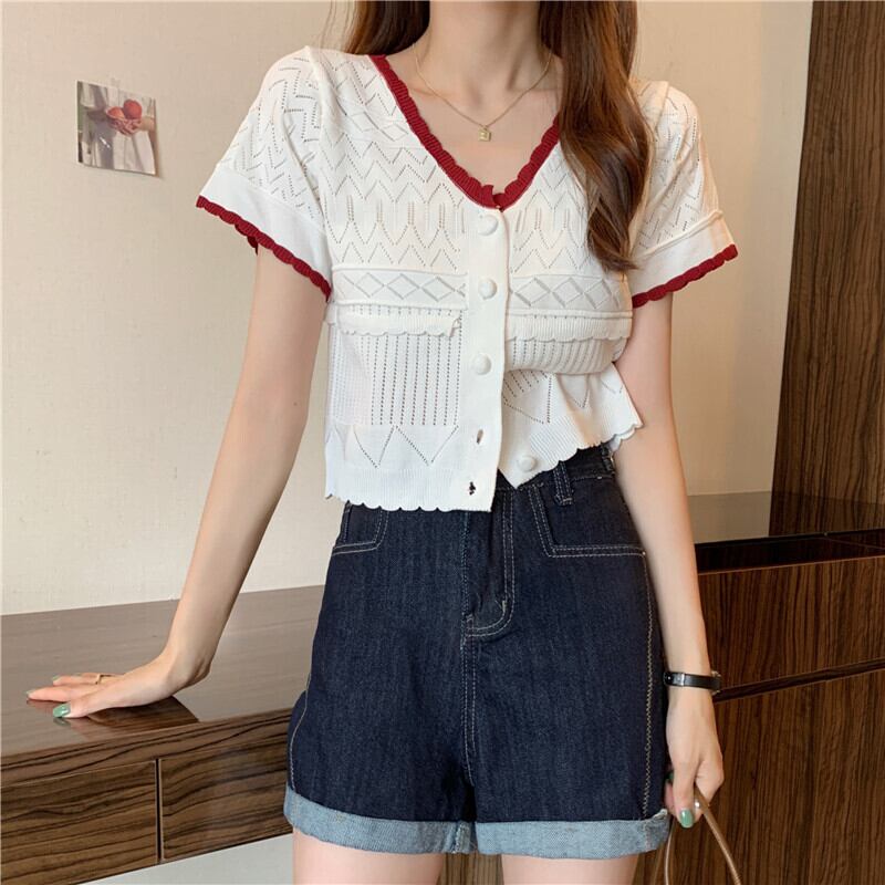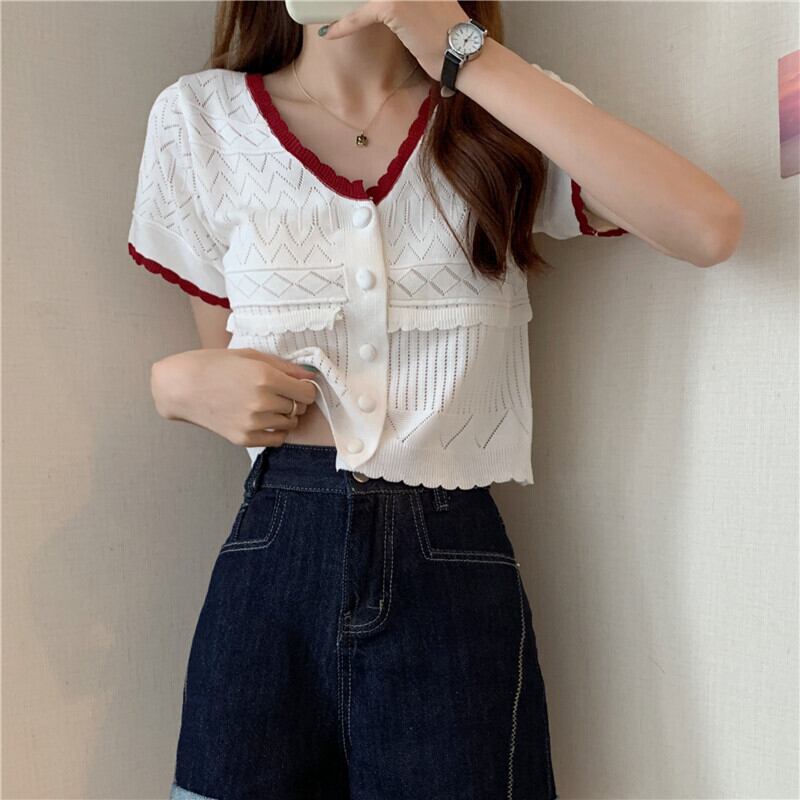 ニットセーター レディースサマー薄手ホワイトショートVネックカーディガンルーズトップス 夏物 1号婦人19866437035
