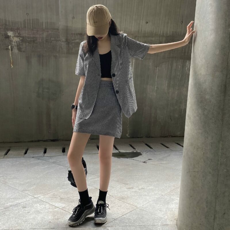 スカート サマー格子柄薄手ジャケット ストリート 夏物 1号婦人86024916363