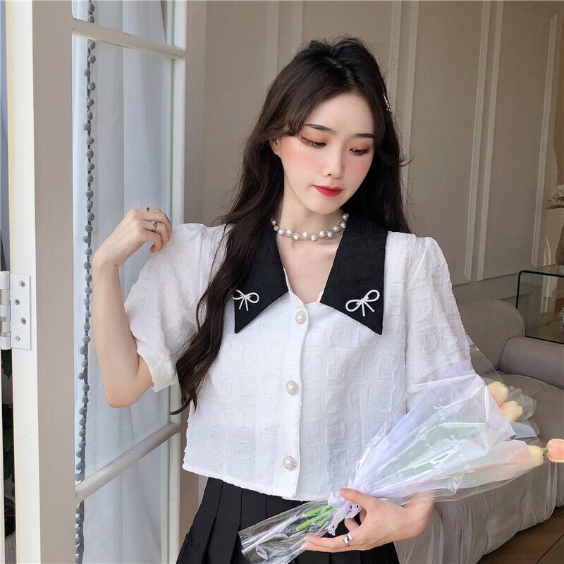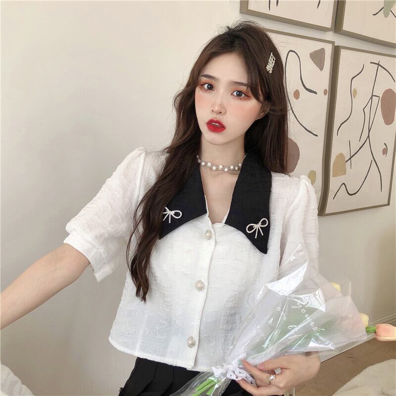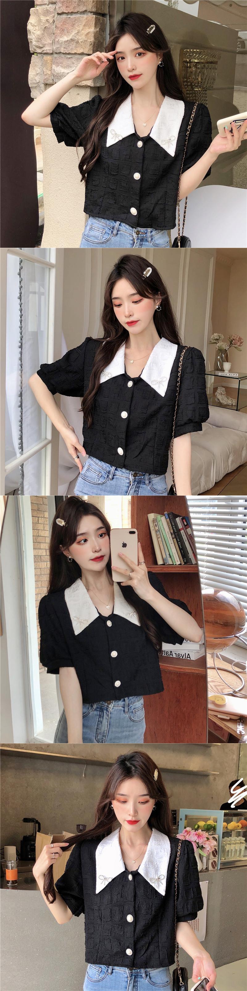 サマーショートホワイトシャツ トップス スタンダードカラールーズ レトロ 夏物 1号婦人63554109052