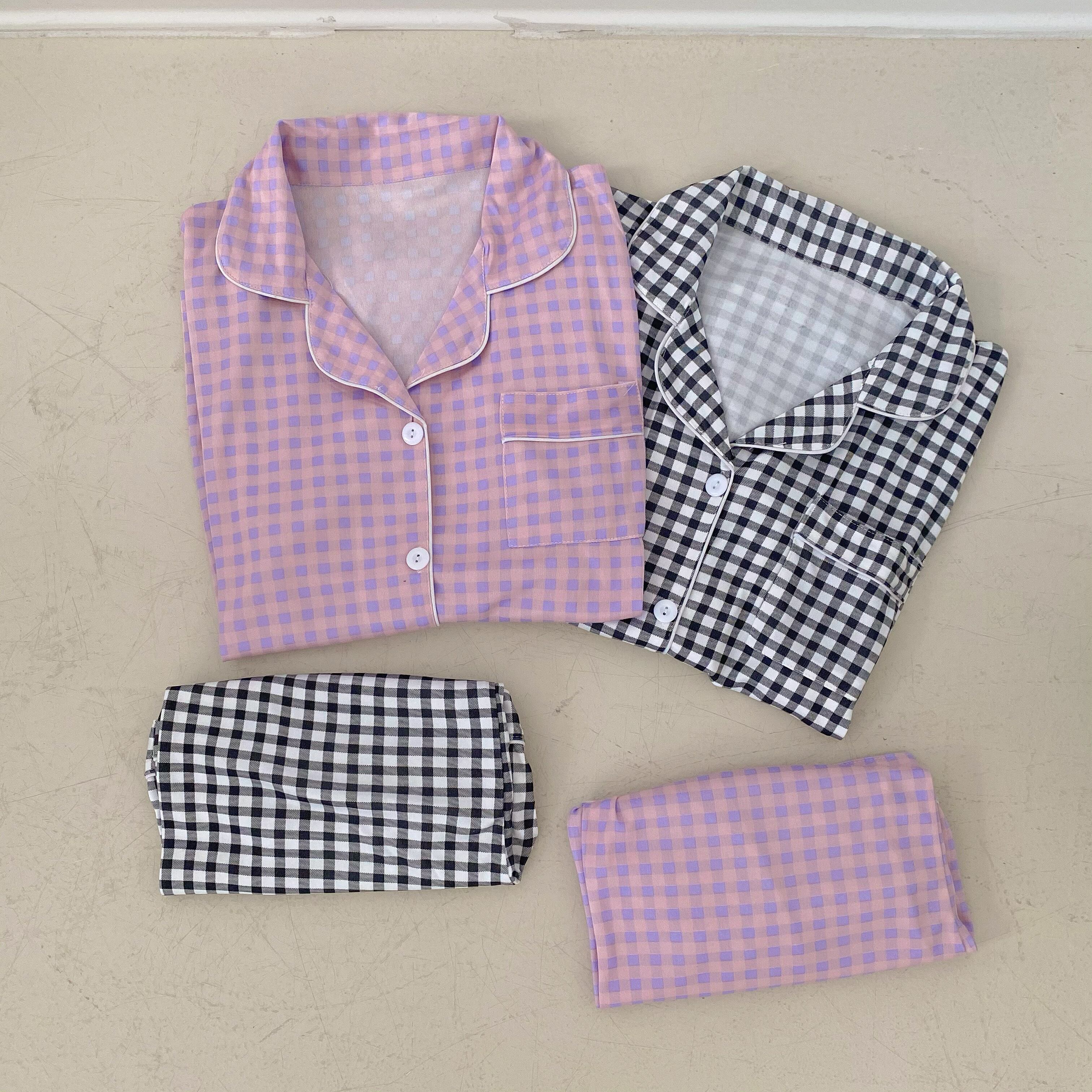 色:紫のチェック柄スーツ,黒のチェック柄スーツ