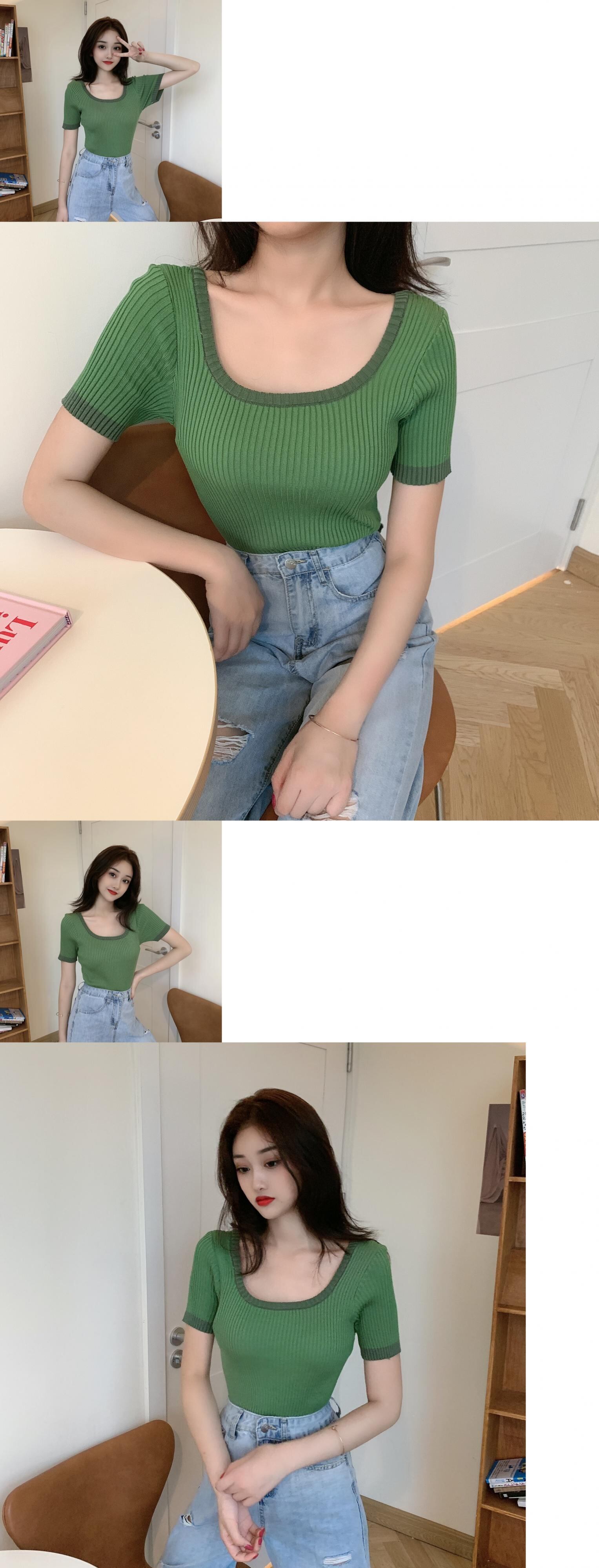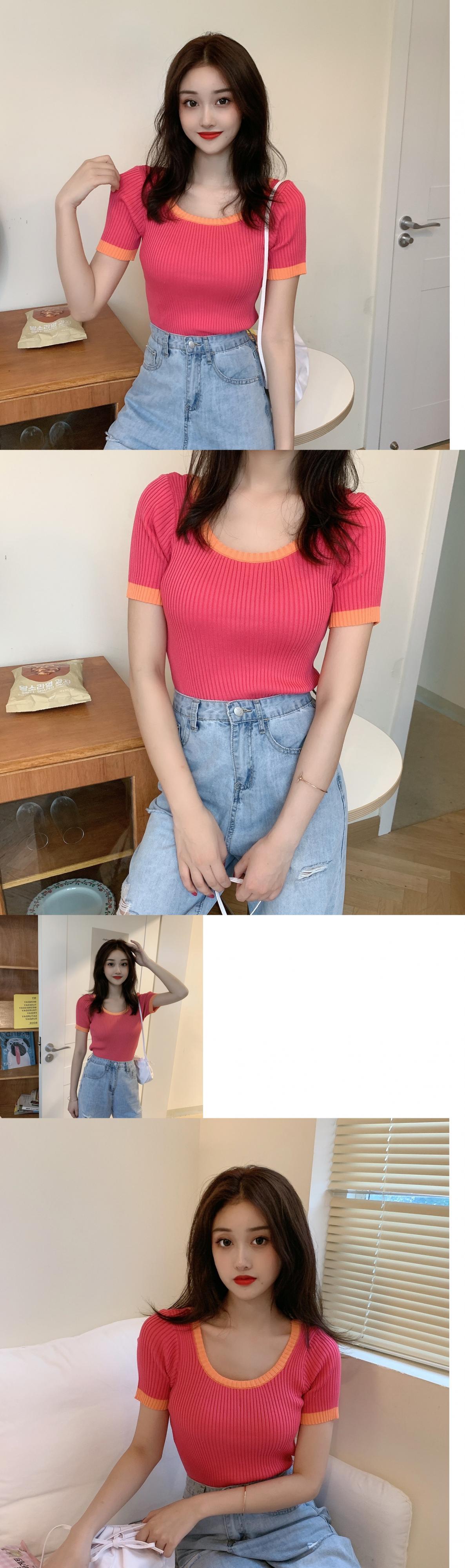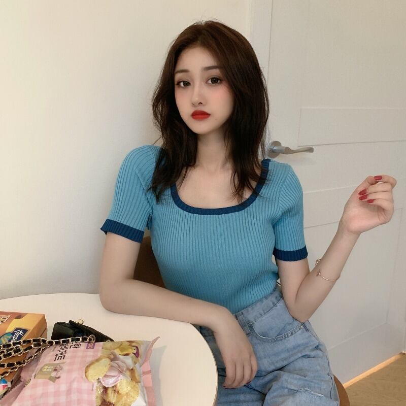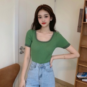 ニットセーター 薄手サマースタイルスタンダードカラースリムトップス レトロ 夏物 スクウェア 1号婦人29859376471