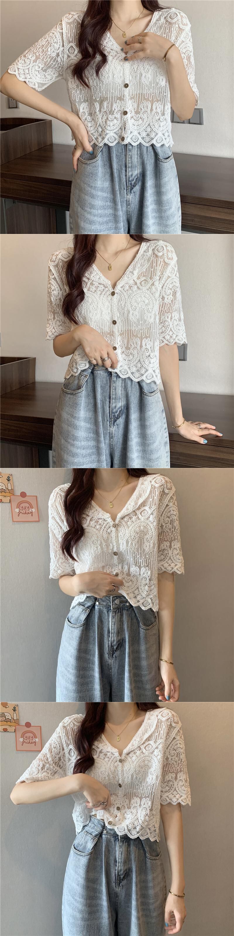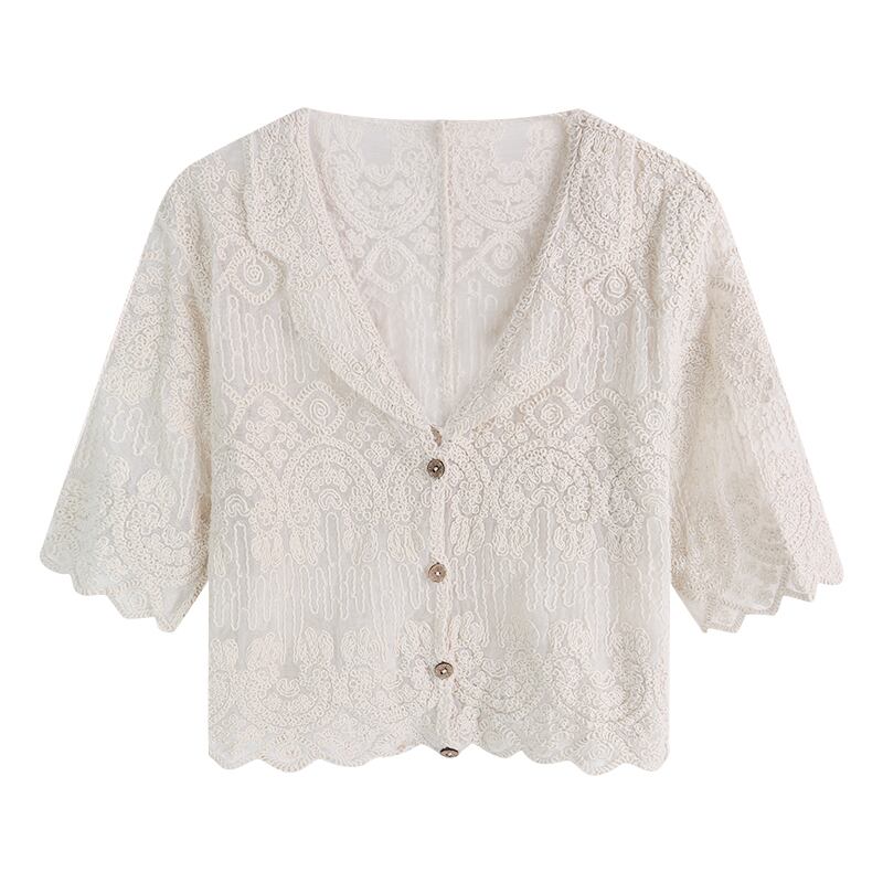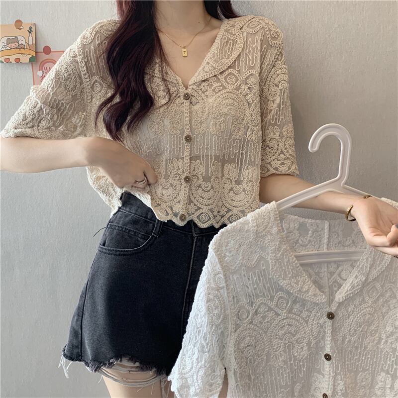 シフォンシャツ サマー薄手レースブラウス カラーショートスタイル 夏物 1号婦人42404694289