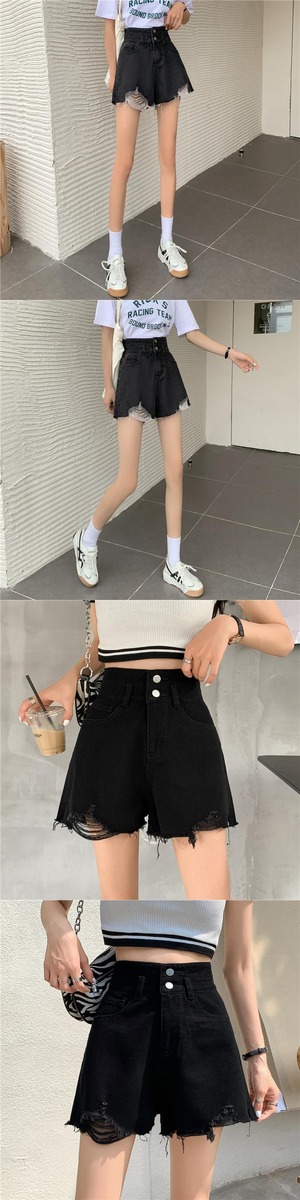 サマージーンズ ハイウェストウェスト薄手ワイドレッグショーツ パンツ ストリート 夏物 ブルマー ワイドパンツ 1号婦人22897831281