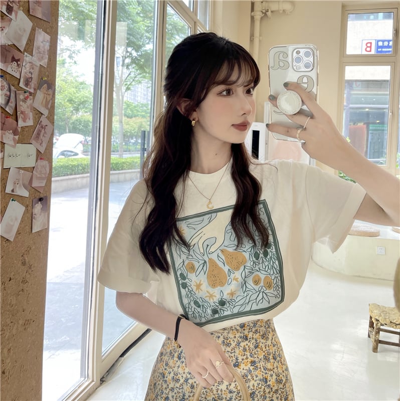 トップス サマーTシャツ 薄手ルーズプリント 夏物 1号婦人70120356059