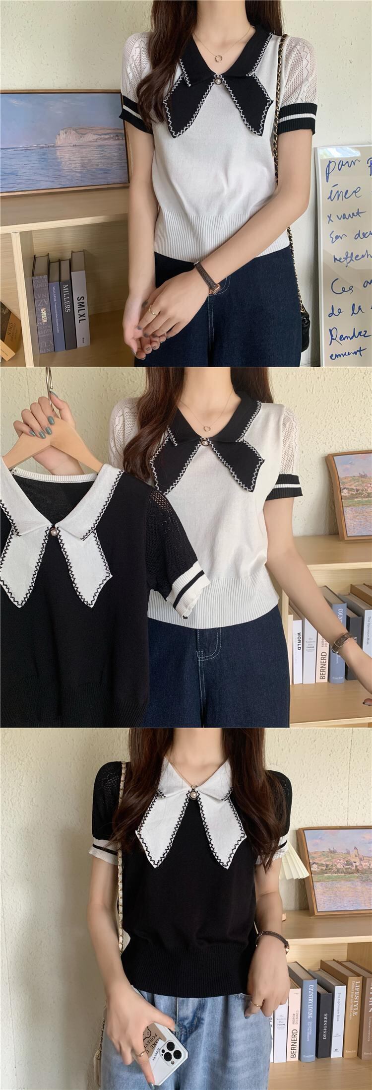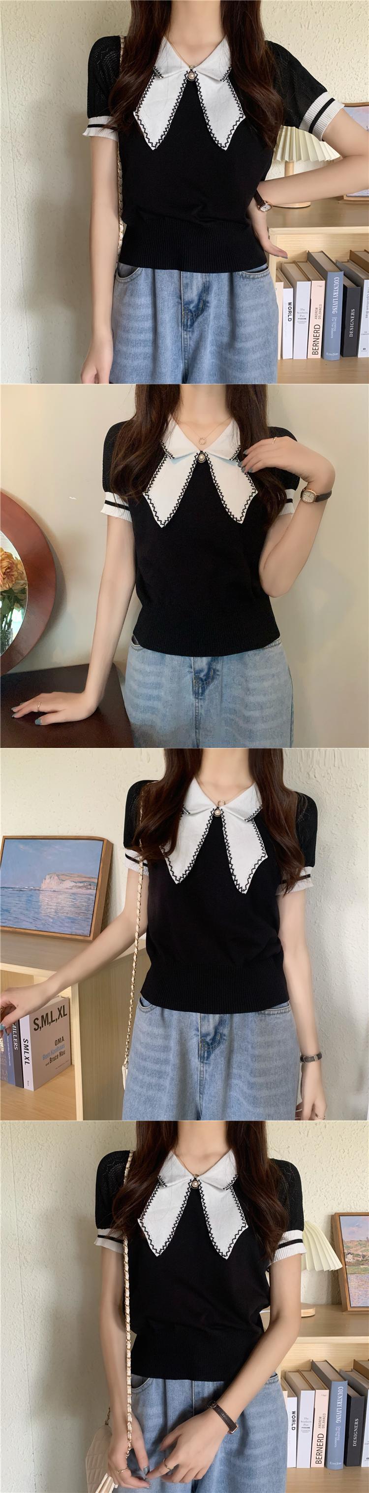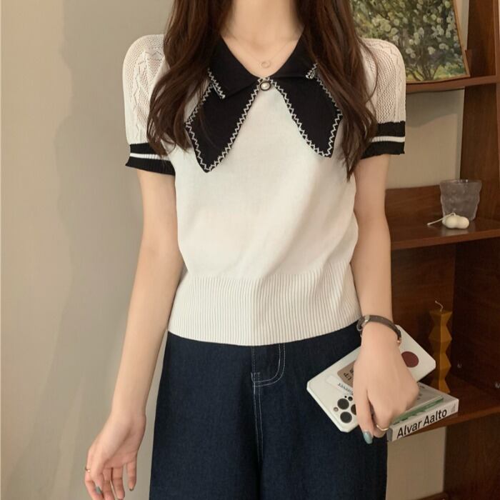 ホワイトカラーセーター サマー薄手ルーズクロップトップ トップス 夏物 1号婦人50811727644