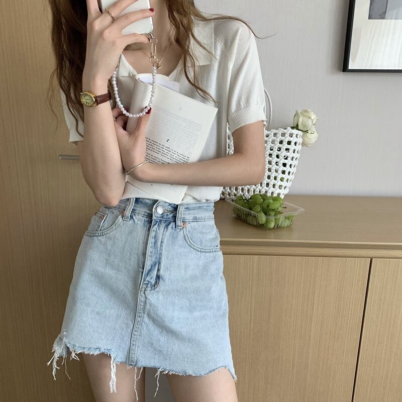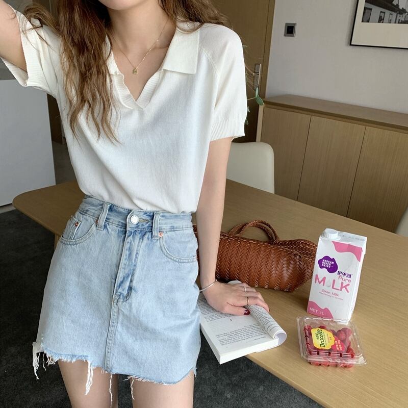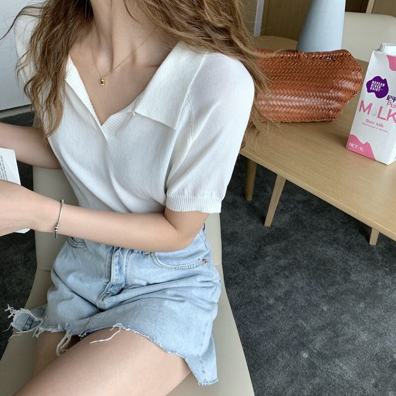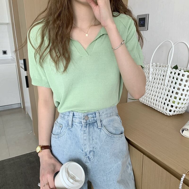 ニットセーター 薄手レディースサマースリムカラーブラックショートトップス 夏物 シルク 1号婦人27547395685