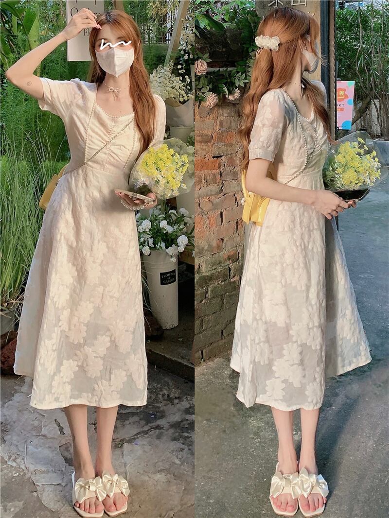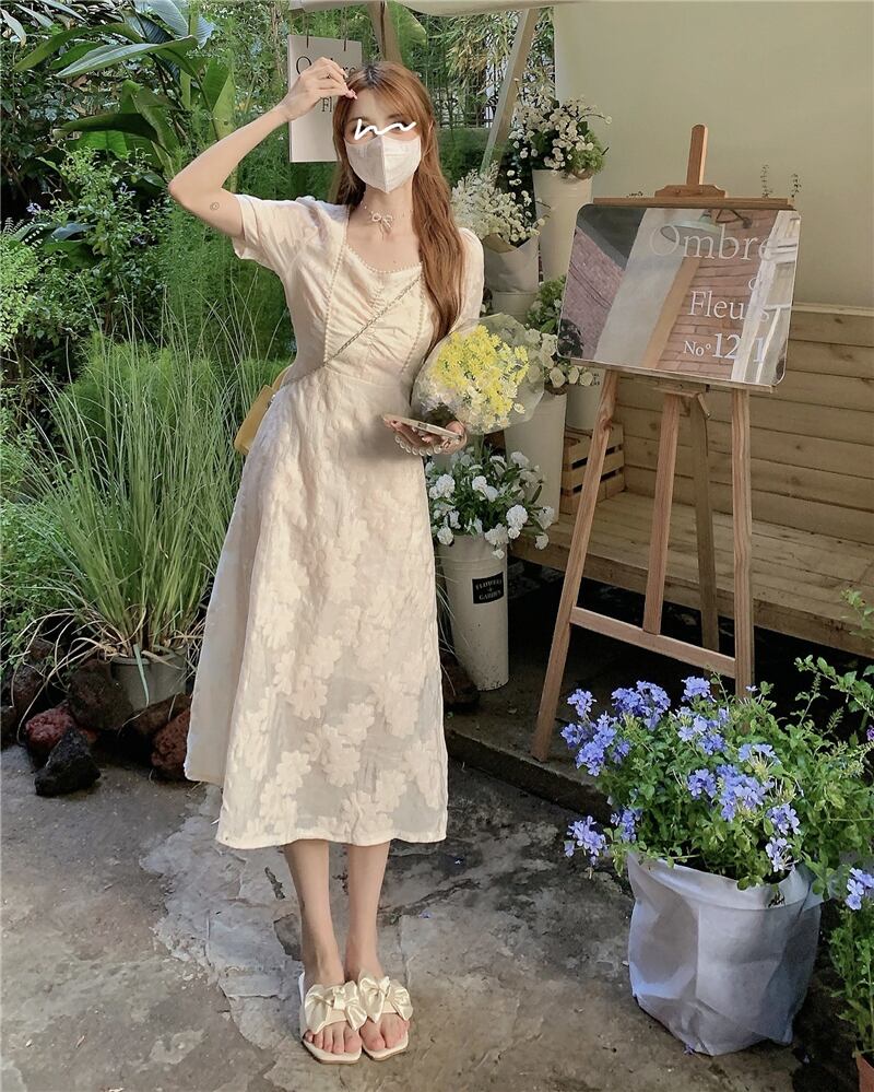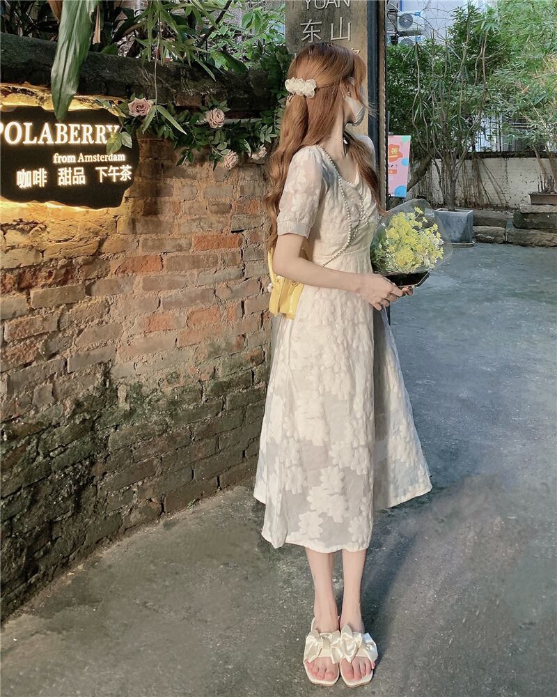 レディースサマー薄手レースFlowerデザイン スリーブドレス 夏物 フラワーデザイン 1号婦人51859586900