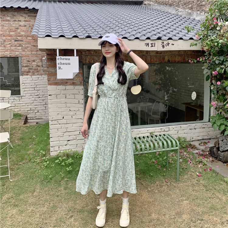 スカート ドレス サマーレースVネックフローラル 夏物 花柄 1号婦人74614383368