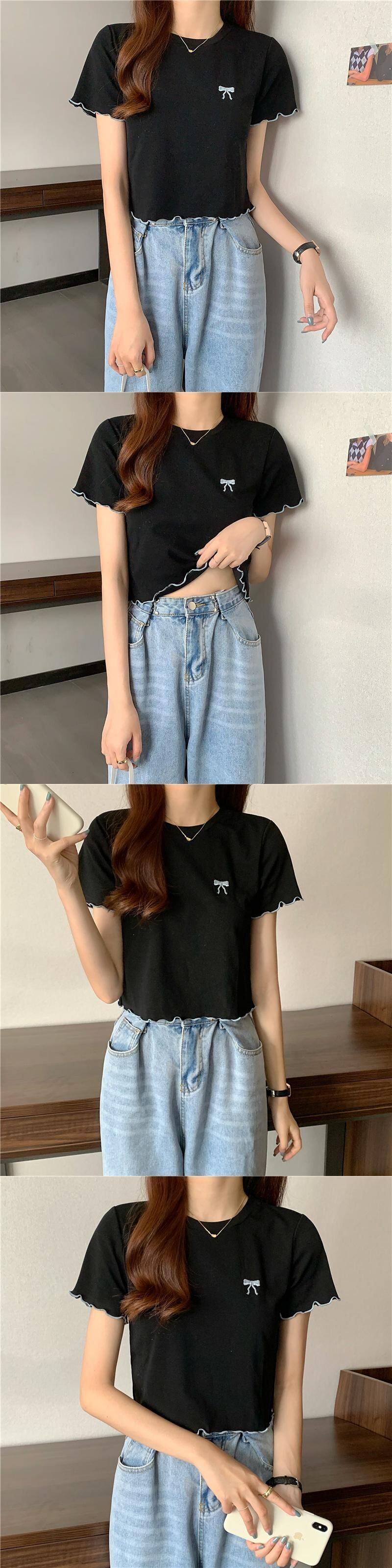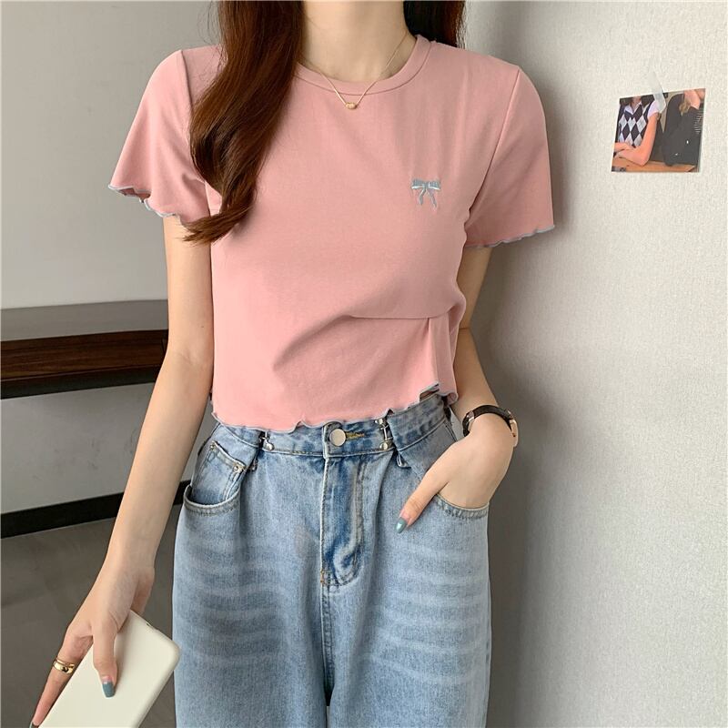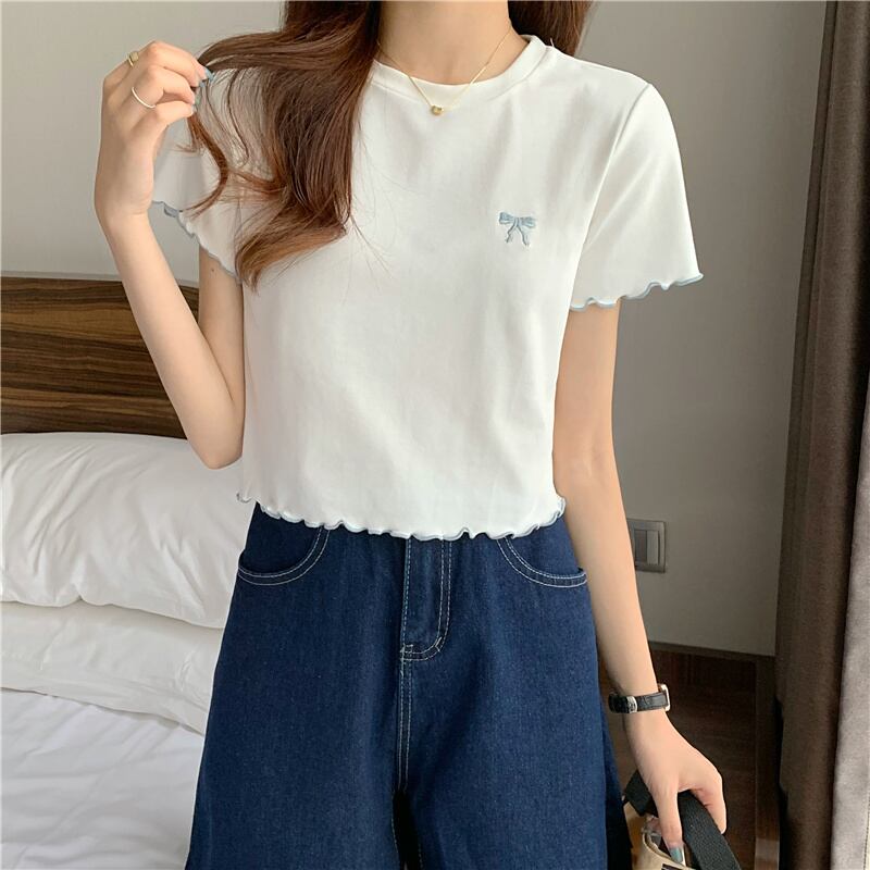 リボン刺繍ホワイトトップス サマーTシャツ 薄手 夏物 1号婦人74626984935