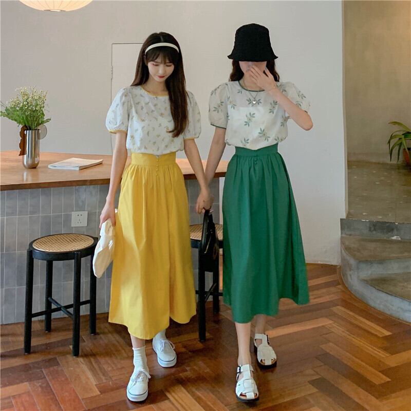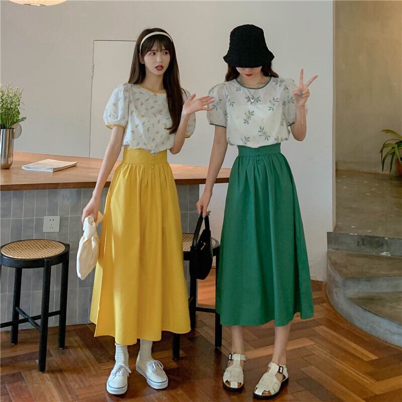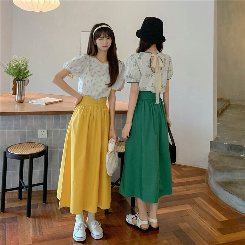 色:グリーントップ,黄色のシャツ,緑のスカート,黄色のスカート