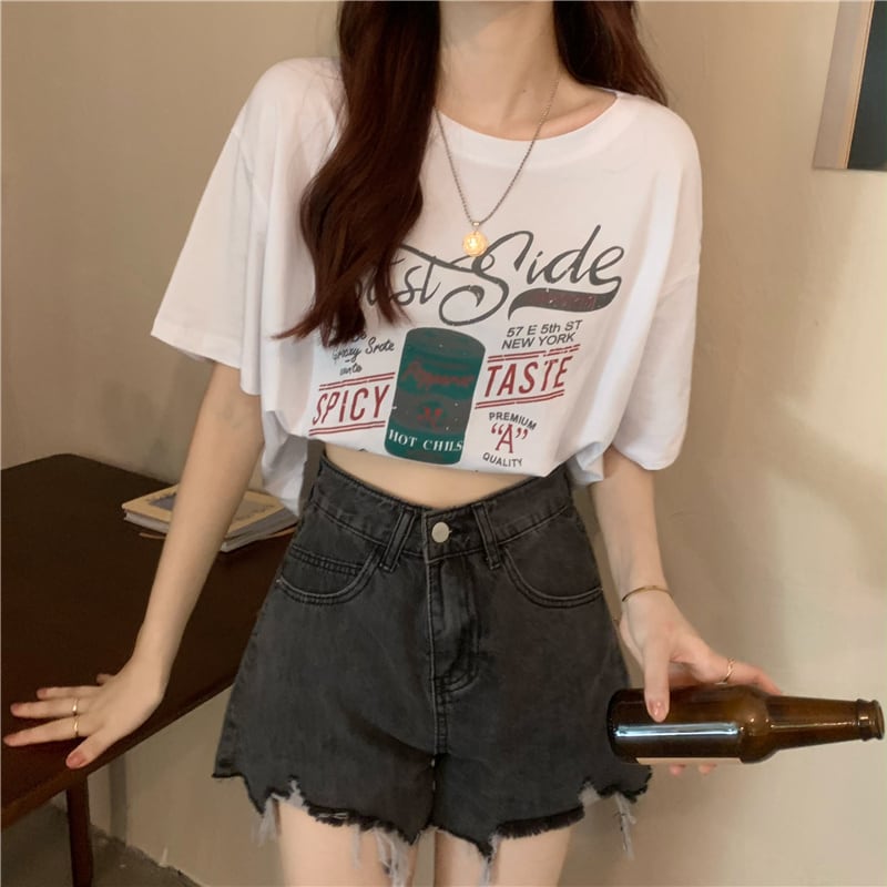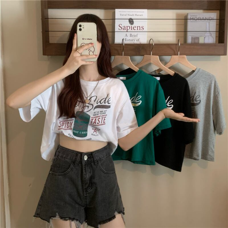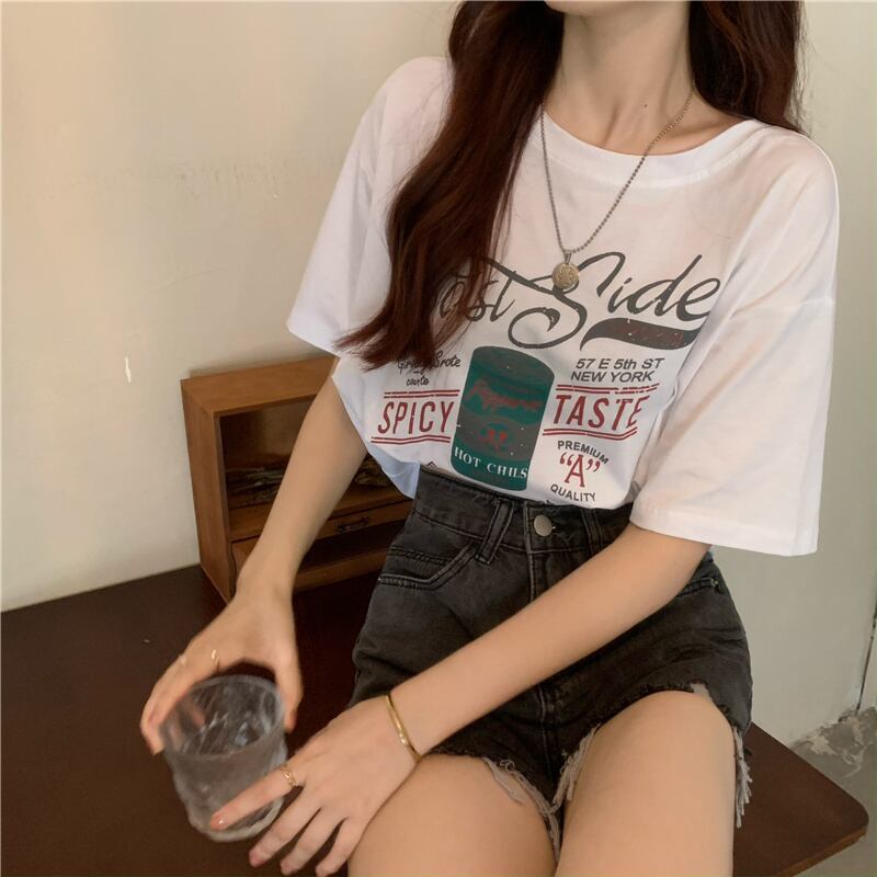 トップス サマーTシャツ 薄手半袖スリーブルーズプリント柄 ショート ハーフスリーブ 大人ガーリー スウィート キュート カジュアル 夏物 1号婦人34450153644