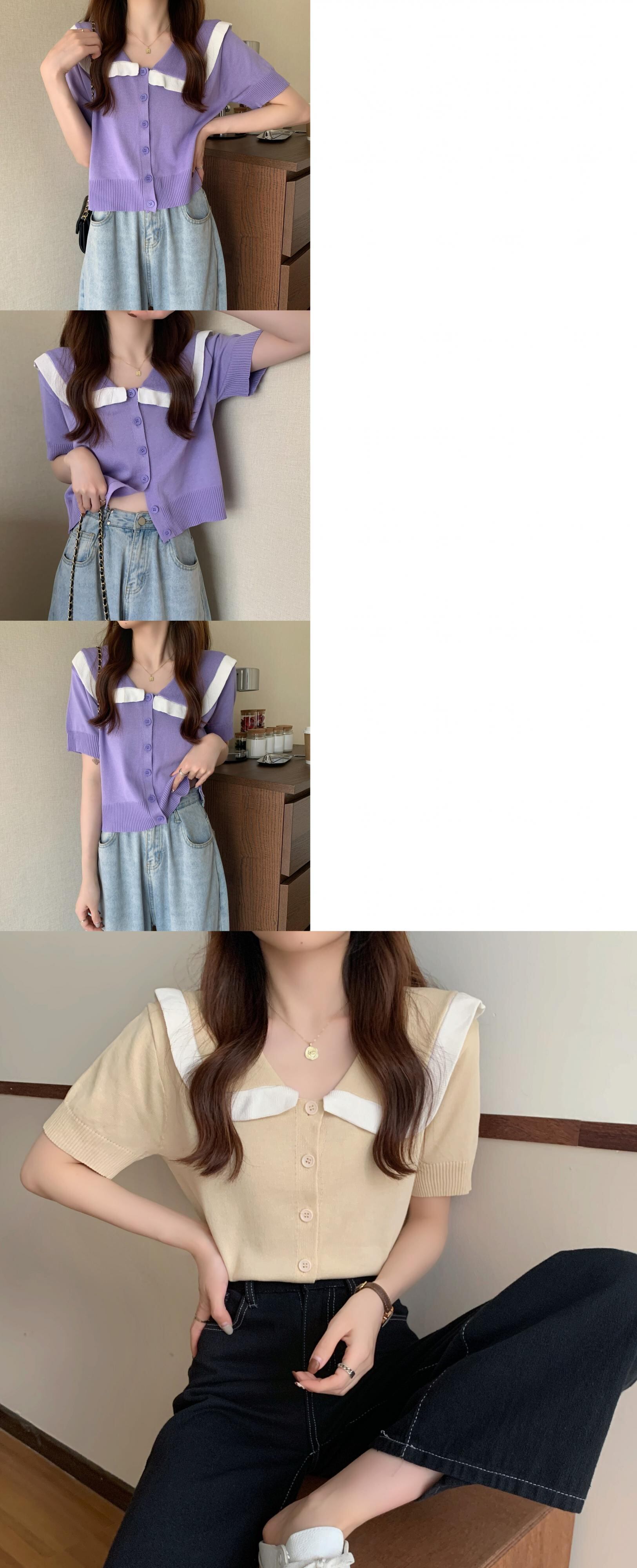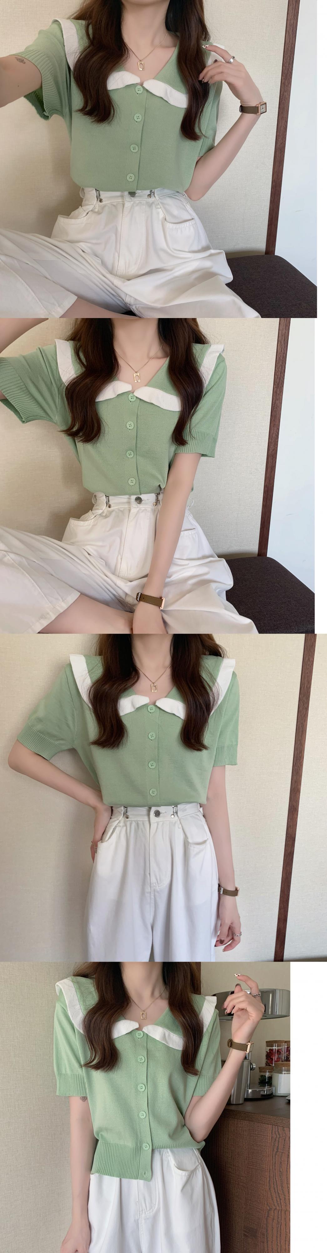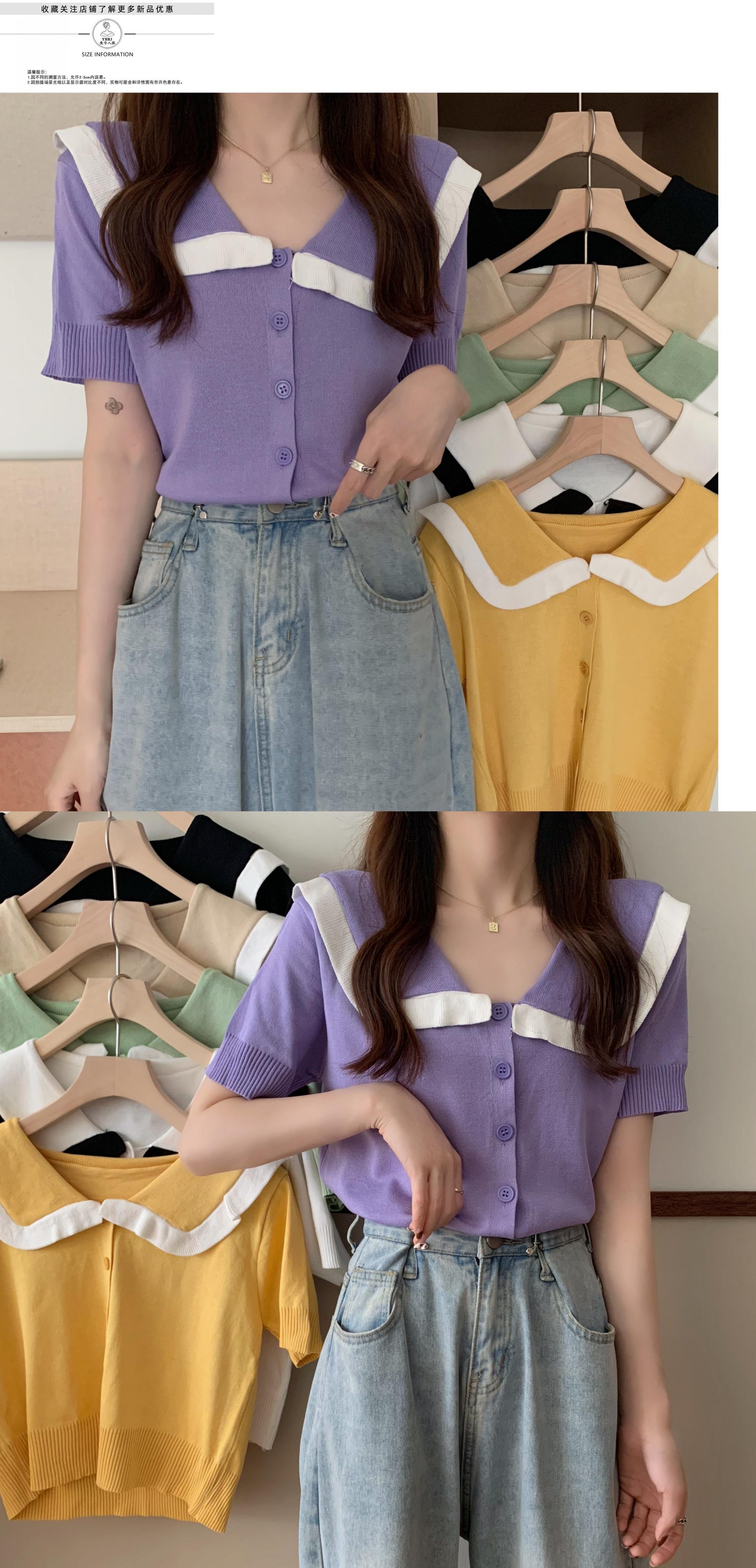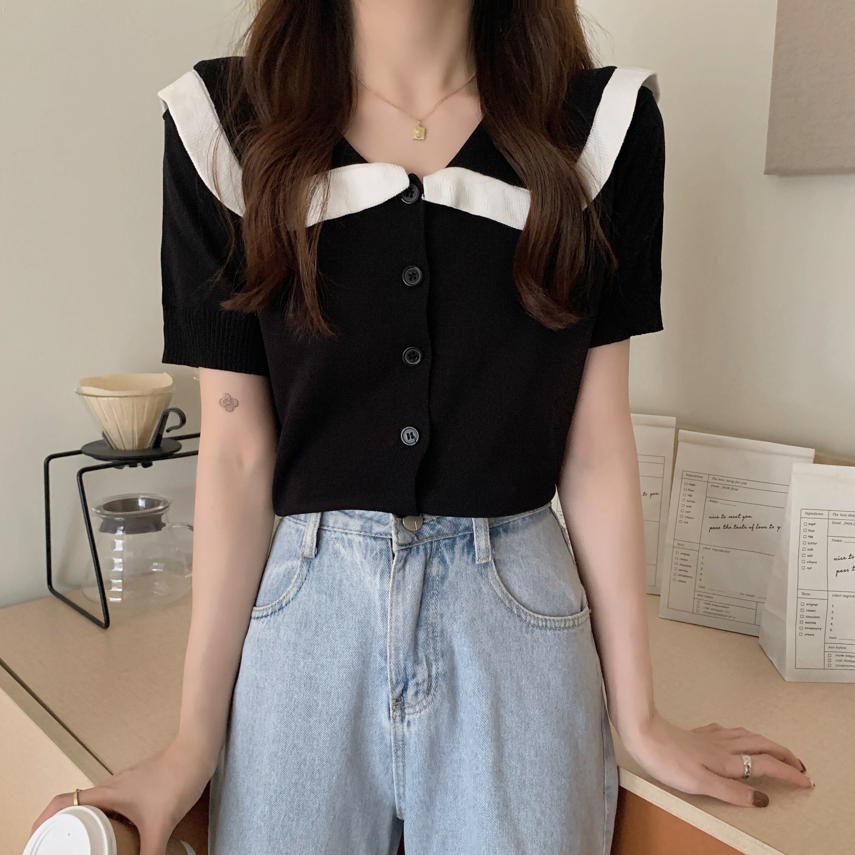 薄手ニットセーター レディースサマースタンダードカラーショートトップス スリムカーディガン レトロ 夏物 1号婦人20960767515