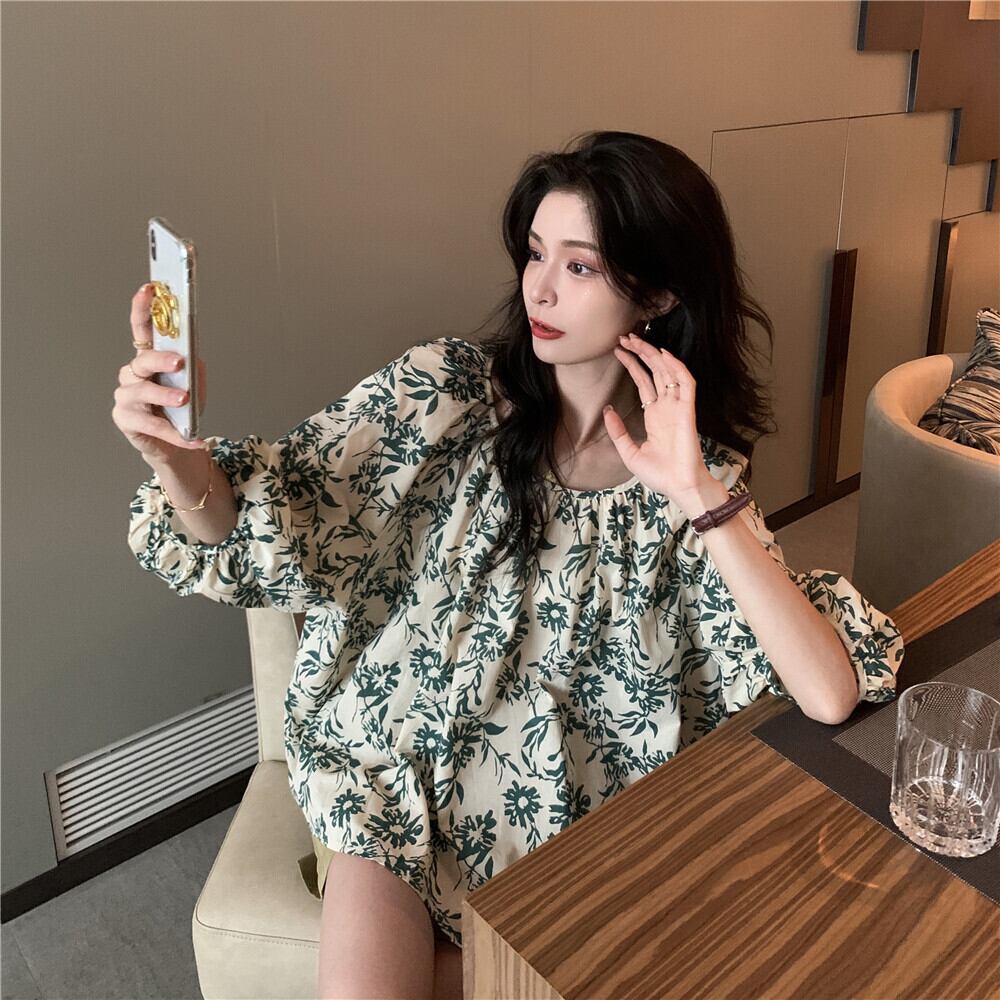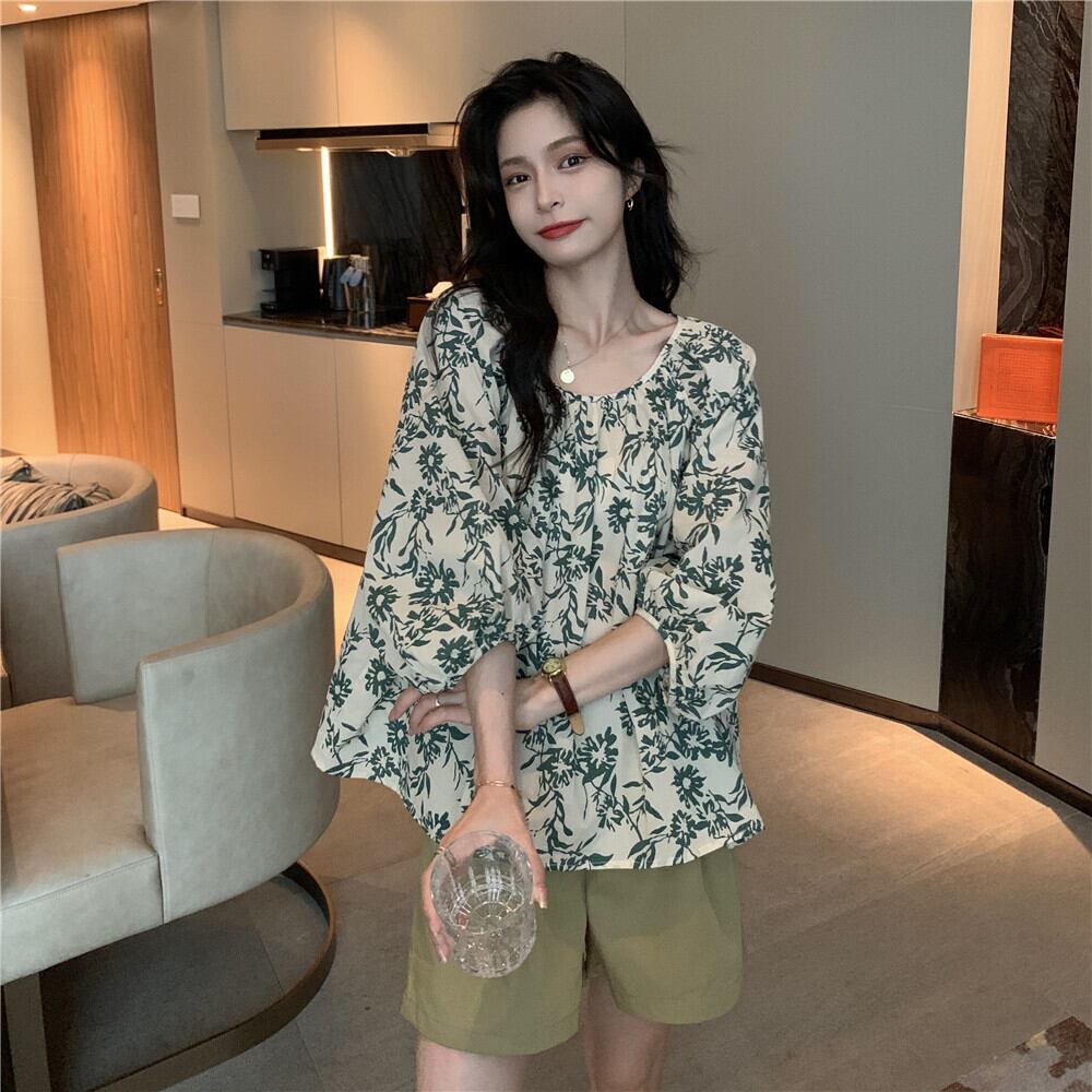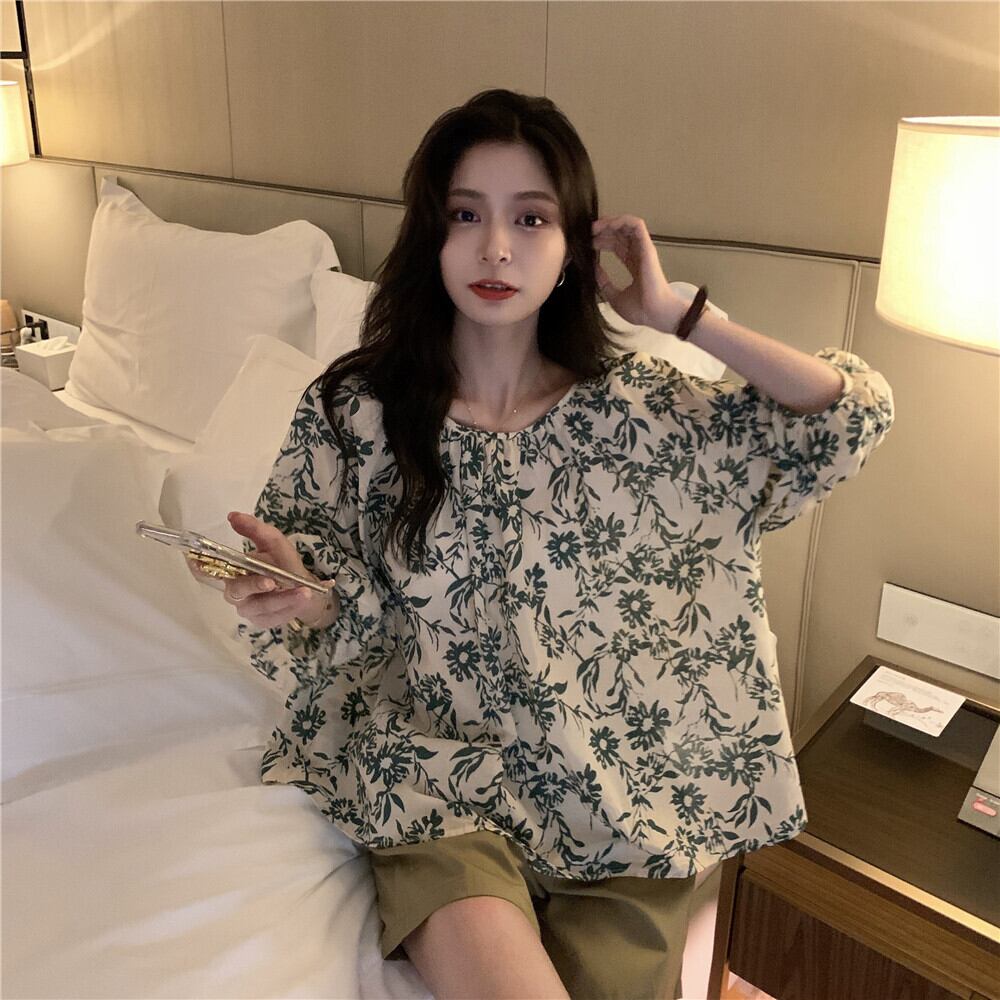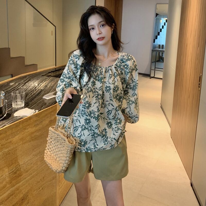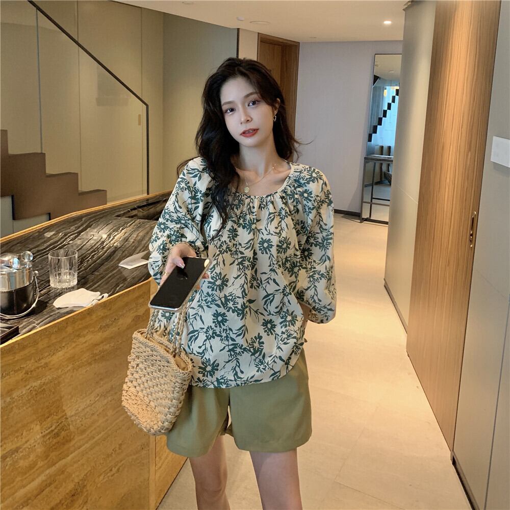 カジュアルサマースタンダードフローラルシャツ ストレッチウェストショーツ レトロ エラスティック 伸縮 夏物 ブルマー 花柄 1号婦人45543302033