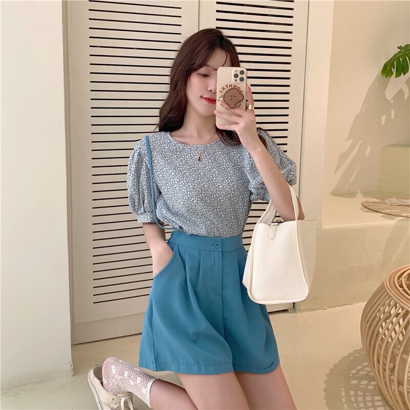 サマーカジュアルフローラルスリーブシャツ ショーツ 夏物 ブルマー 花柄 1号婦人2544799371