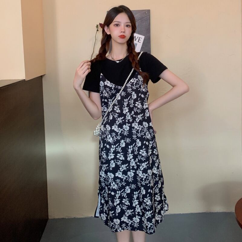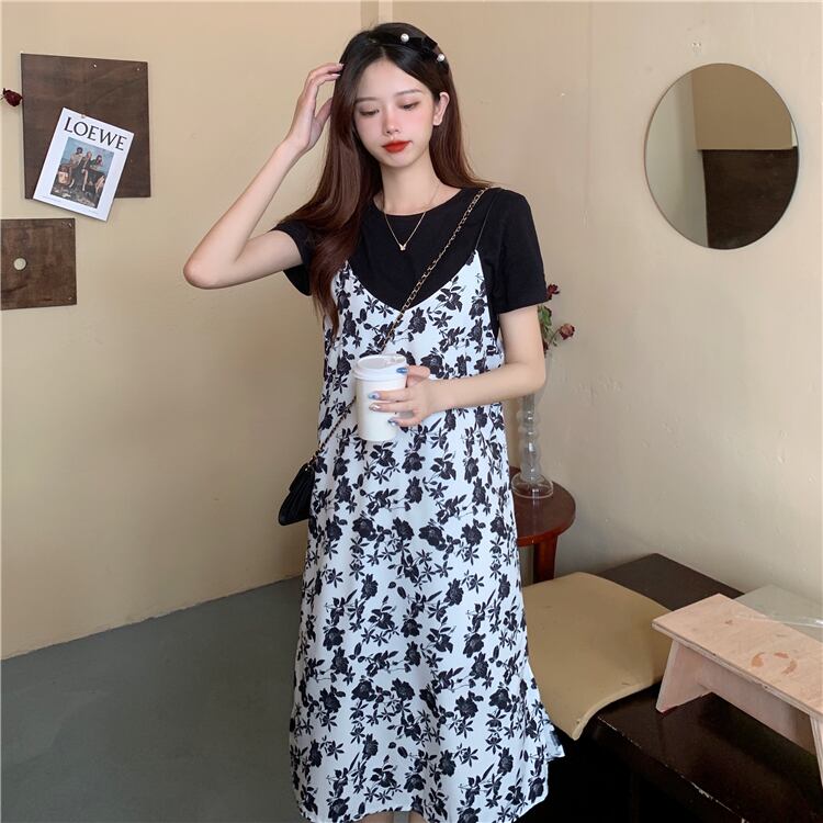 色:Tシャツ,アプリコットドレス,ブラックサスペンダースカート