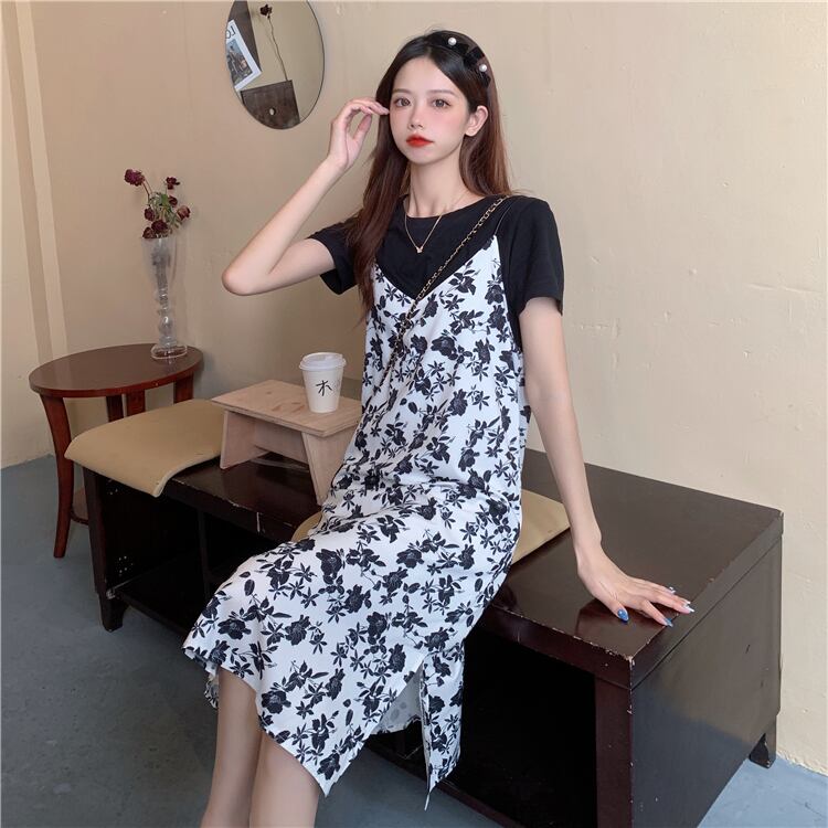 スカート サマーフローラルブラックTシャツ 夏物 花柄 1号婦人60068871673