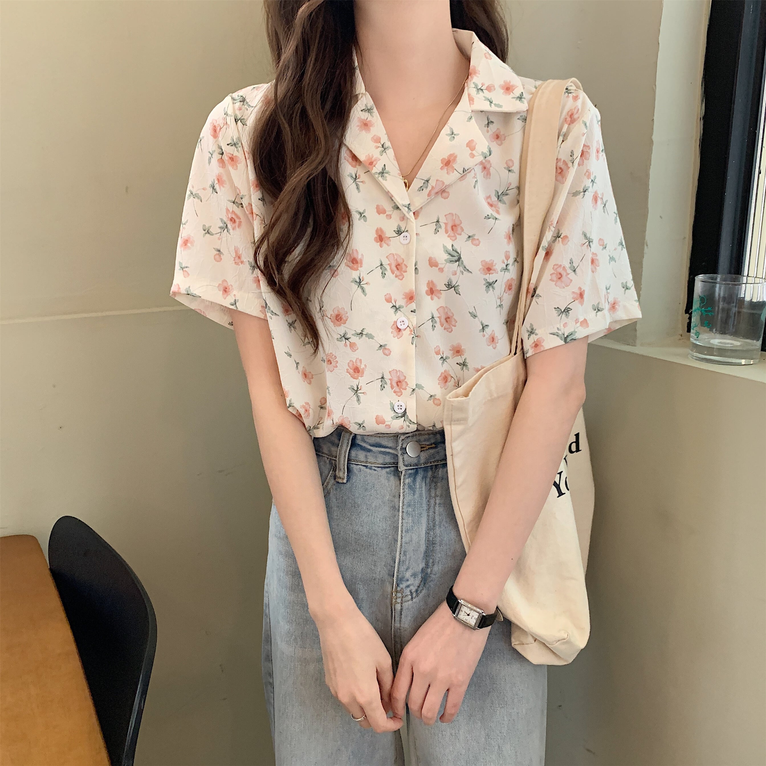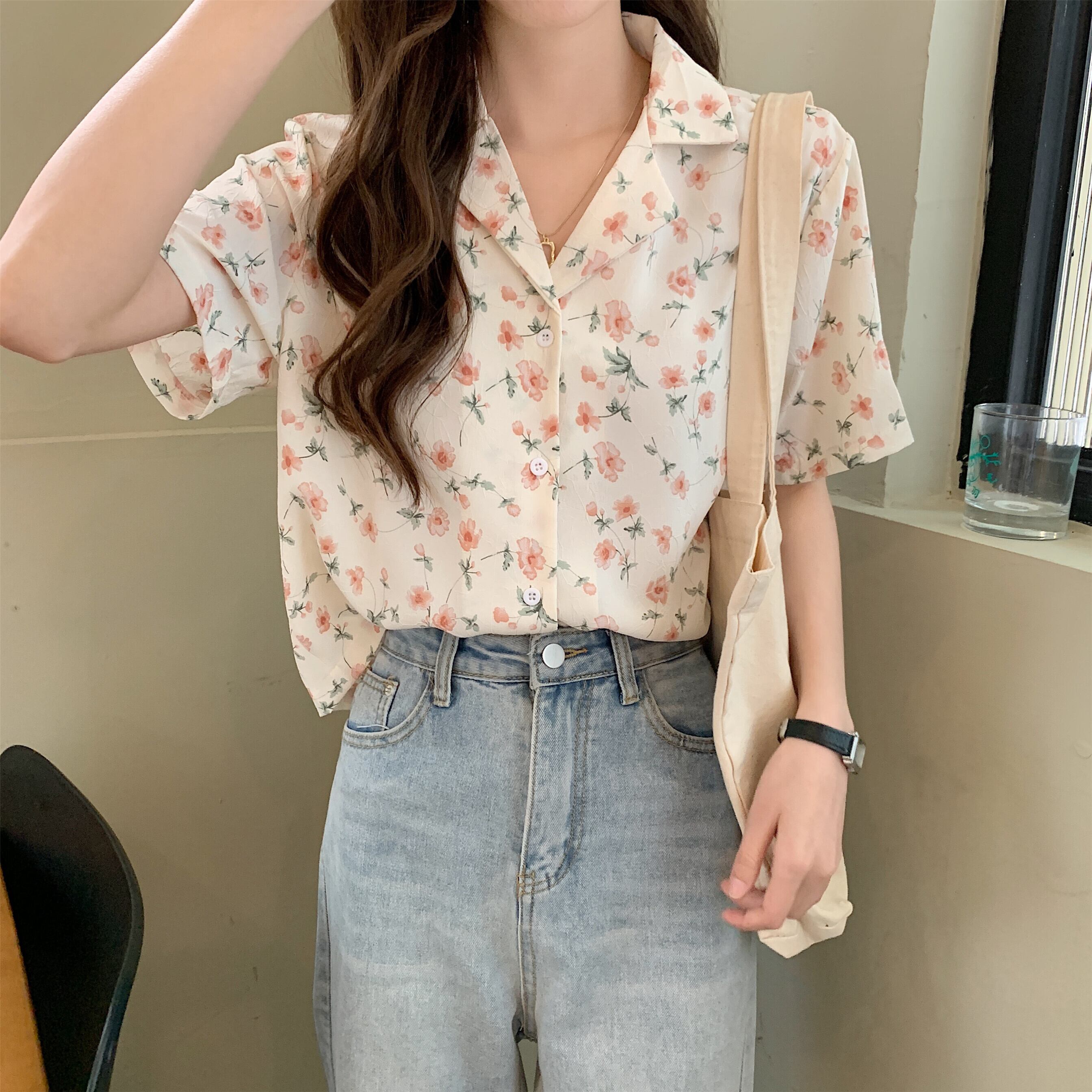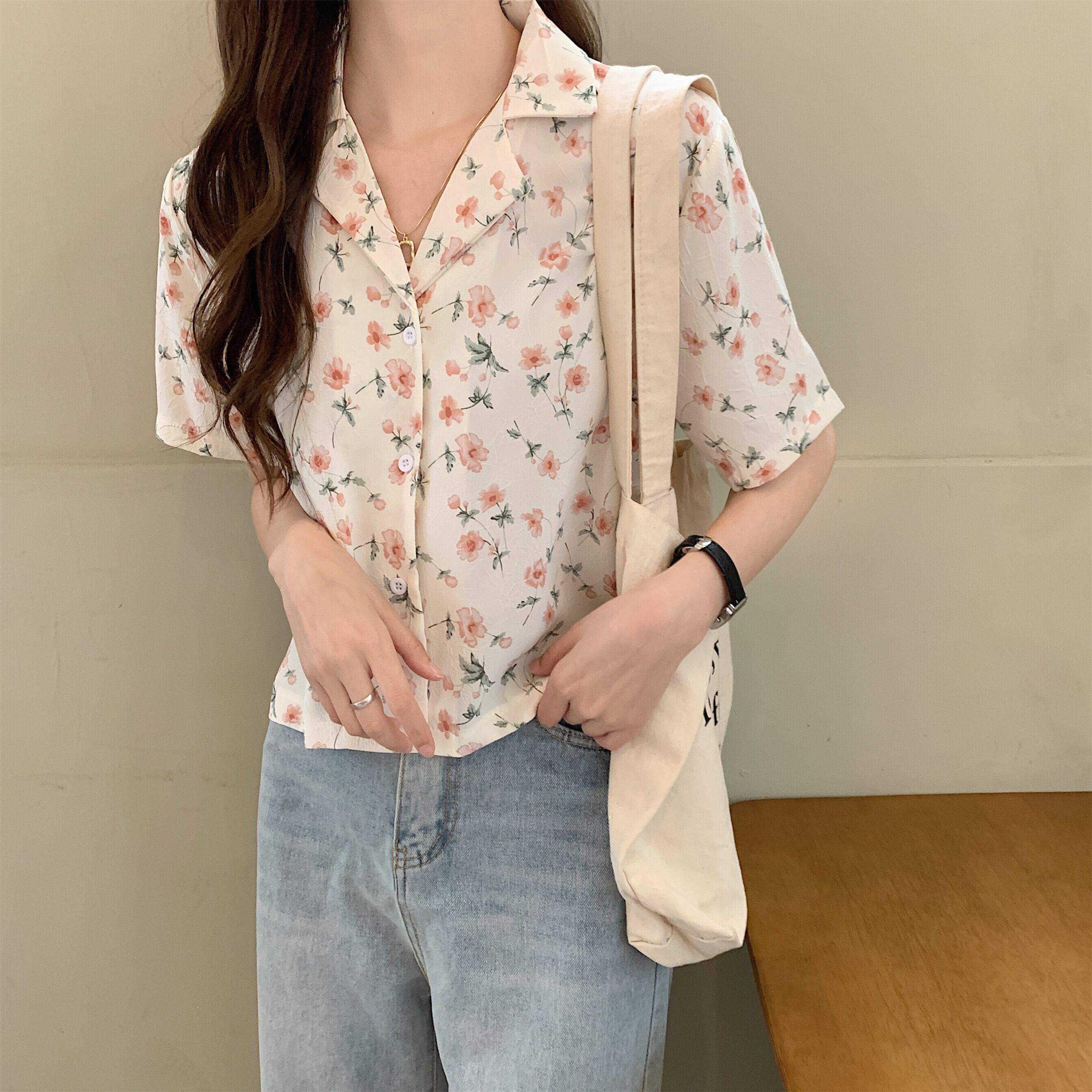 スタンダードトップス シャツ サマー薄手フローラルVネック レトロ 夏物 花柄 1号婦人90233969960