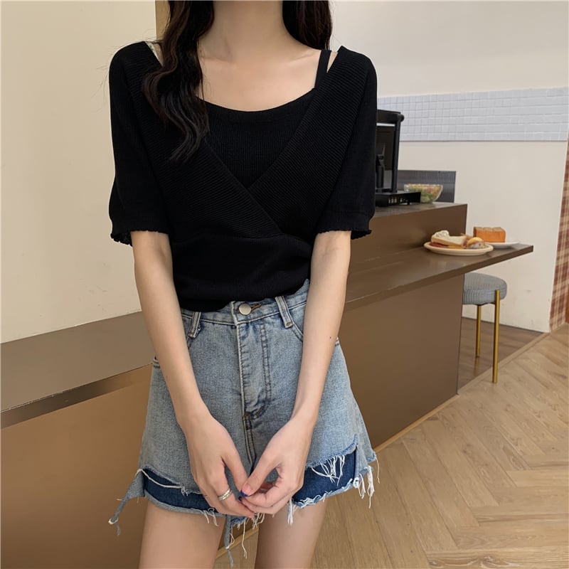 ニットセーター レディースサマーショートトップス 薄手シャツ 夏物 1号婦人86599876079