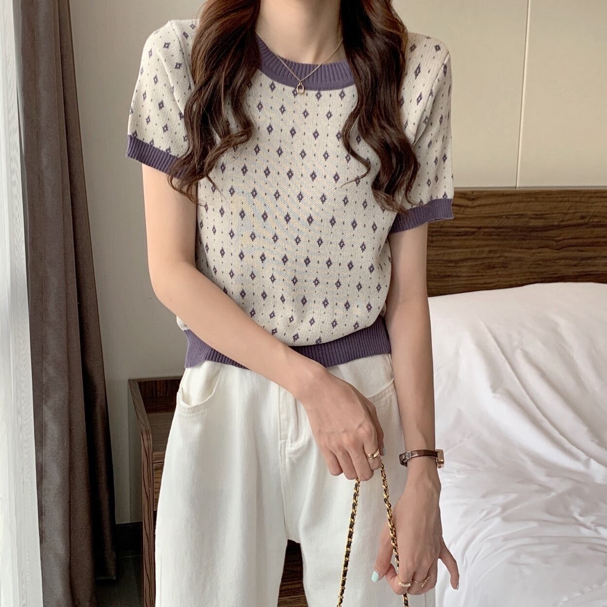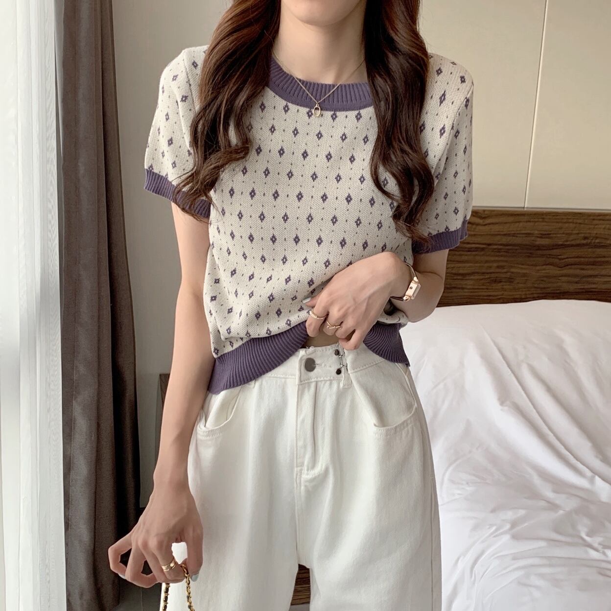 ショートトップス サマーTシャツ 薄手ニットカジュアルスリム 大人ガーリー スウィート キュート 夏物 1号婦人56251313259