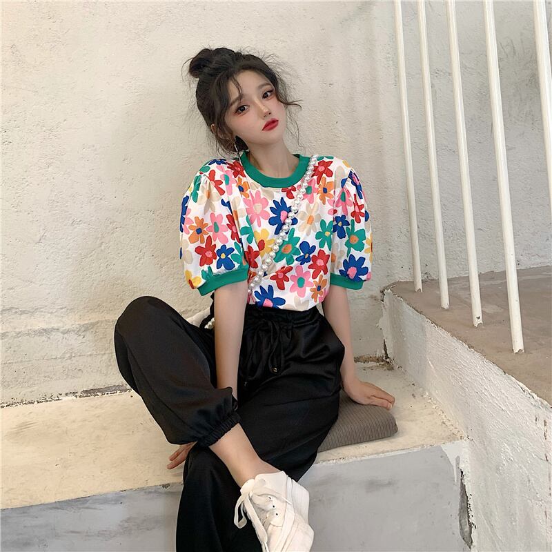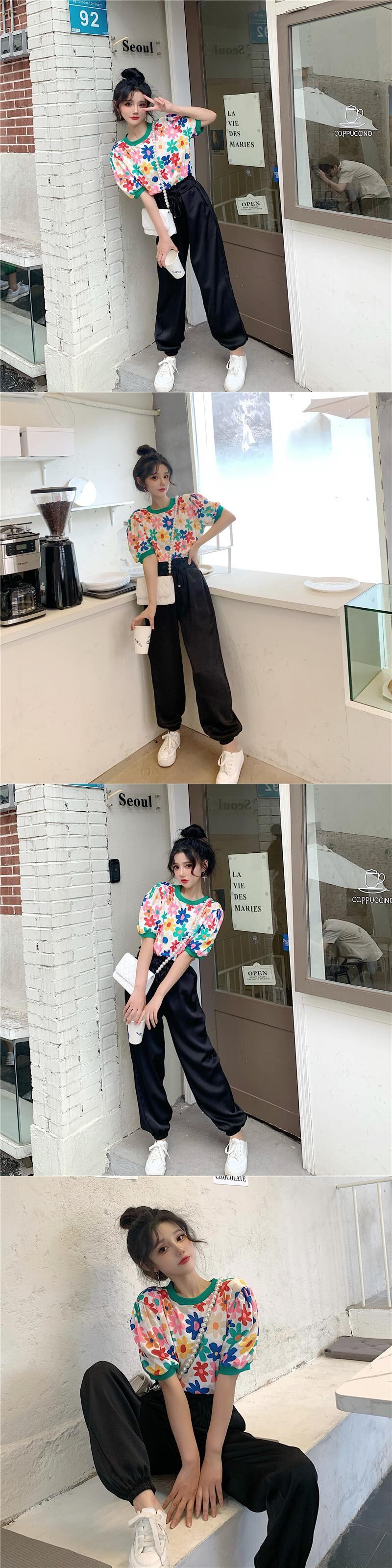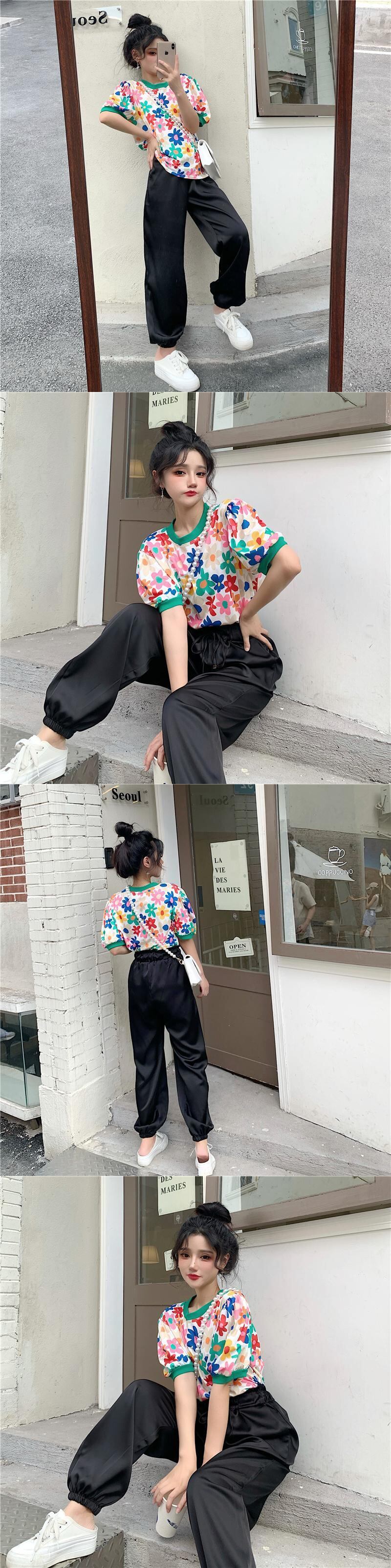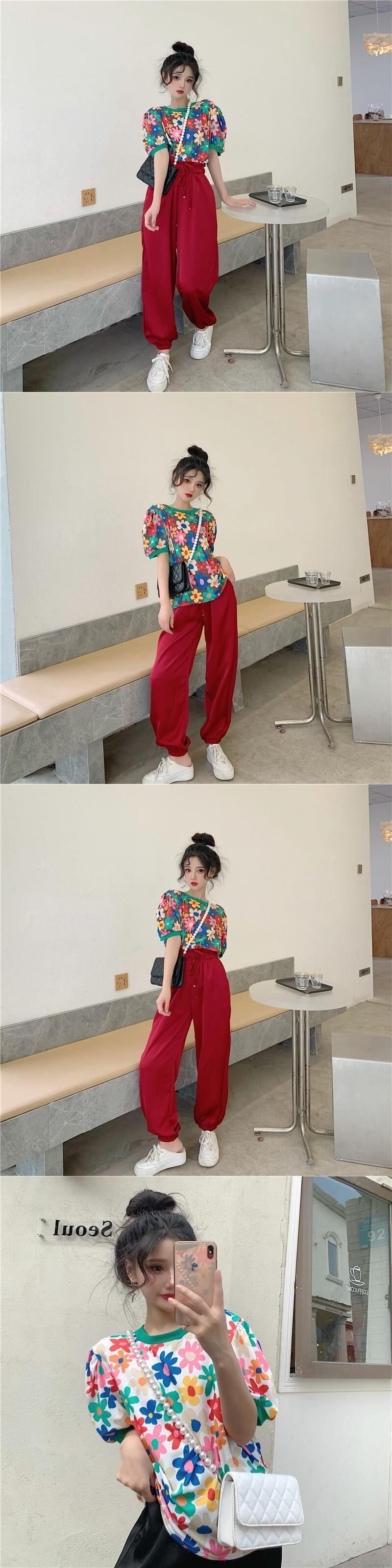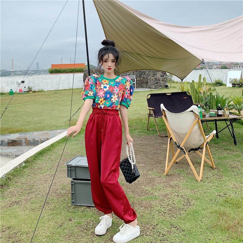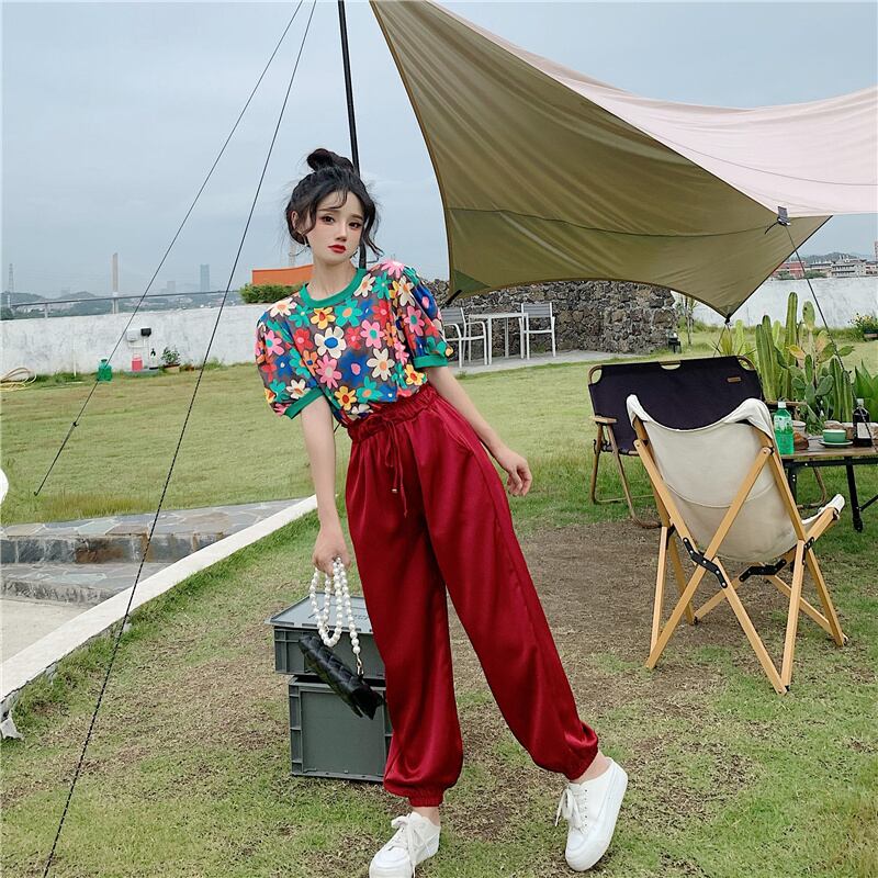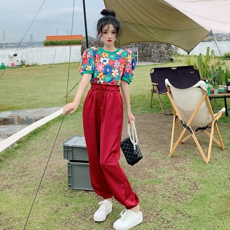 サマーレッドTシャツ カジュアルロングパンツ ストリート 夏物 1号婦人11256047376
