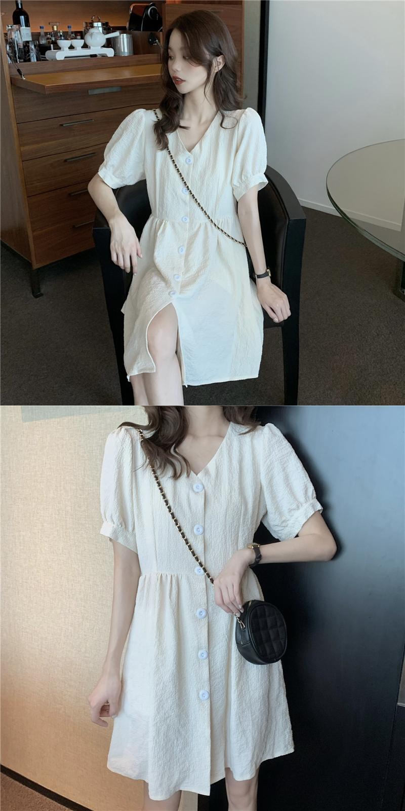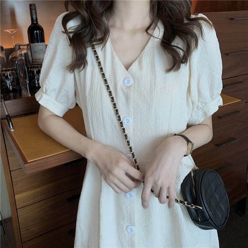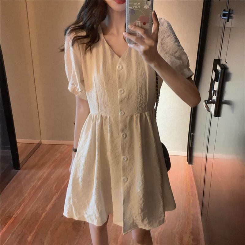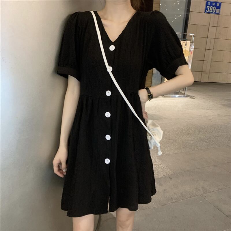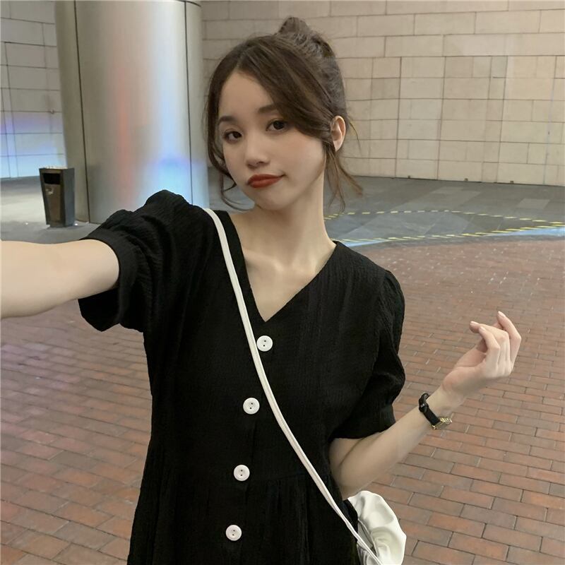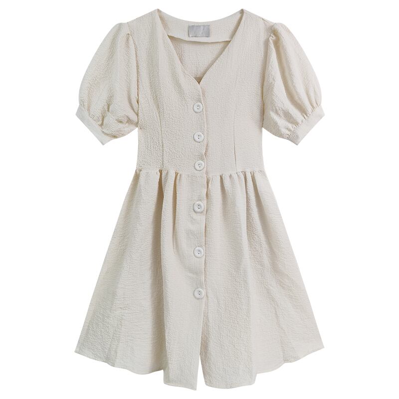 サマードレス ワンピース スリーブAラインスタンダードVネックスカート レトロ 夏物 1号婦人89270773754