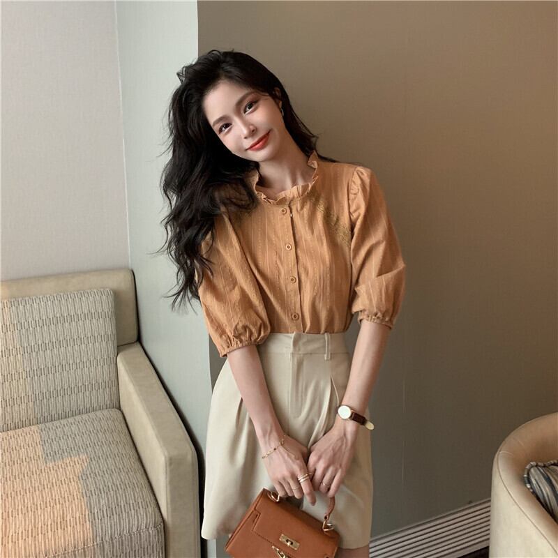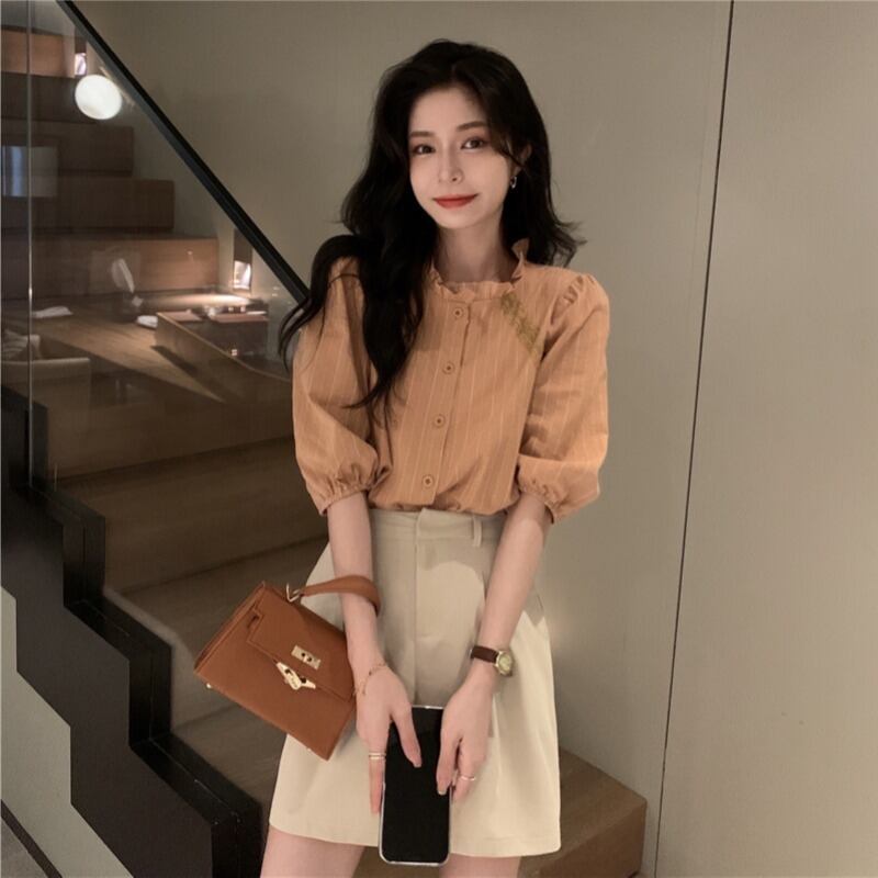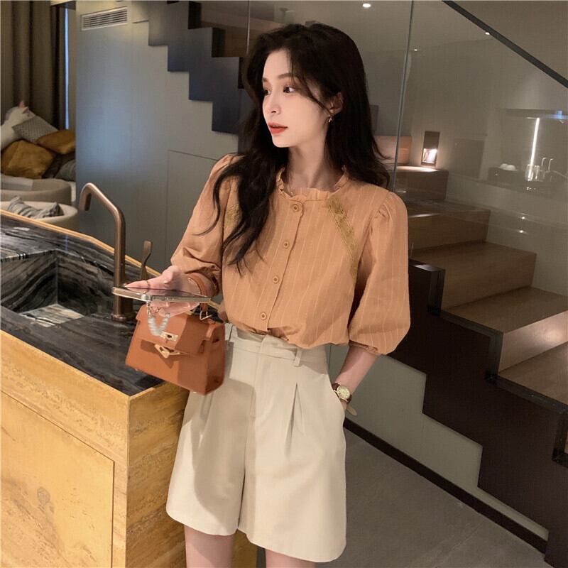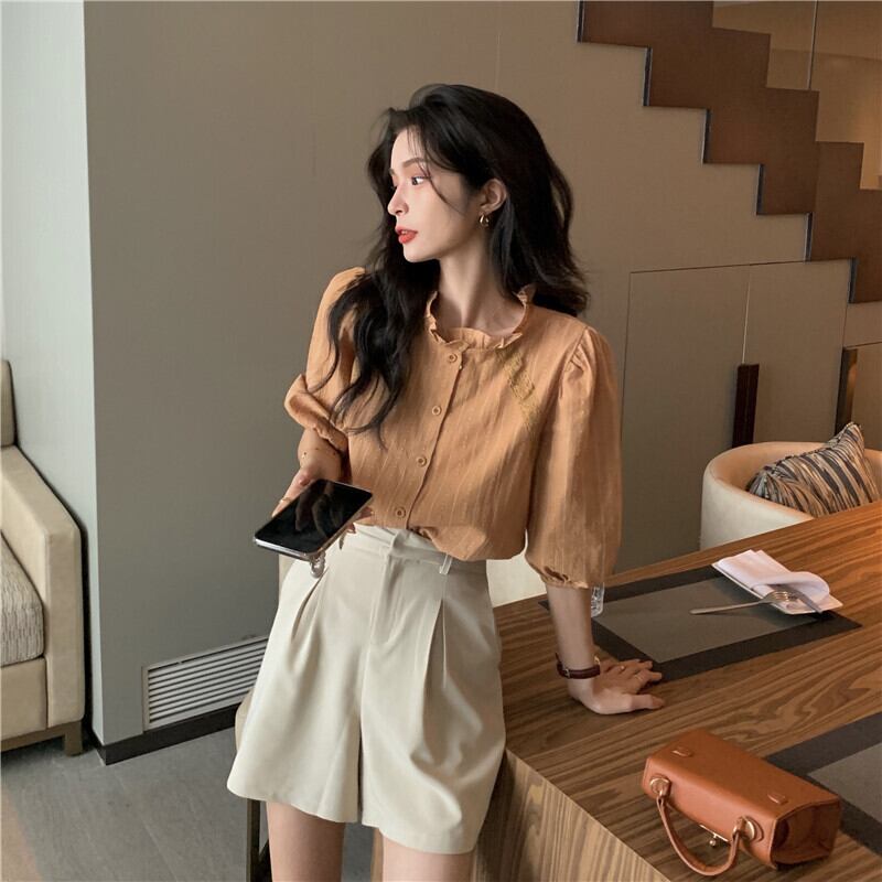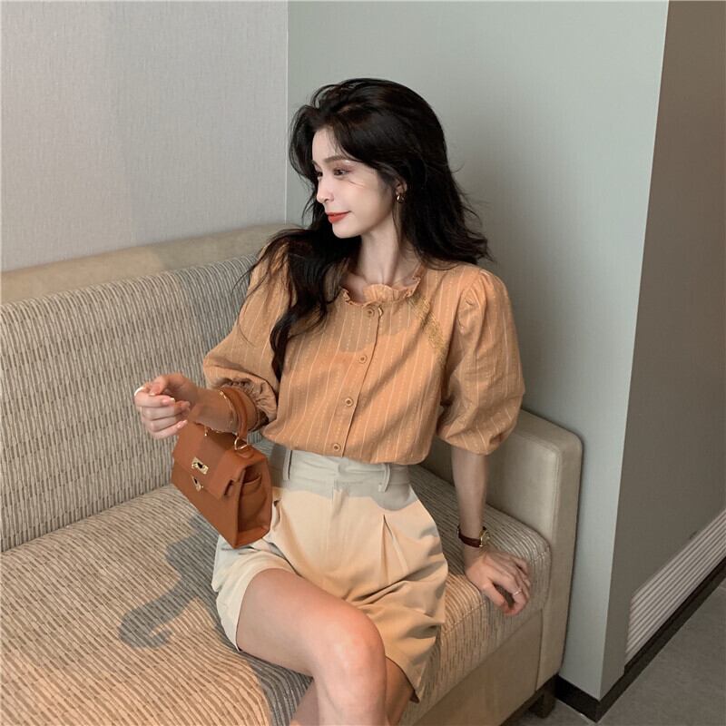 色:ミルクオレンジシャツ,カーキショートパンツ