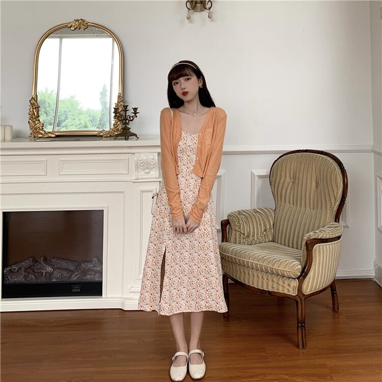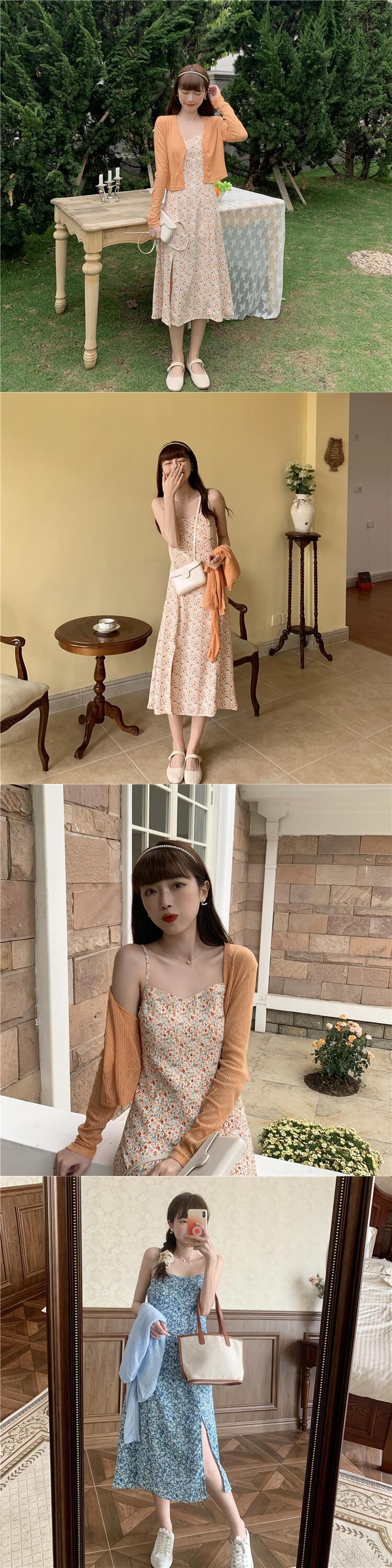 色:ブルーカーディガンワンピース,オレンジカーディガンワンピース,青いスカートワンピース,オレンジスカートシングル