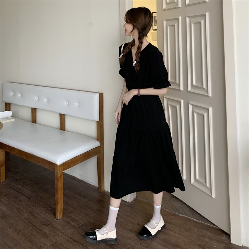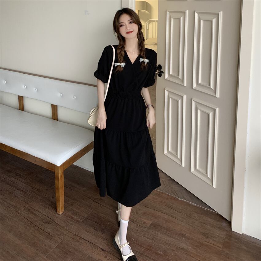 ドレス サマー薄手スタイルウェストVネックブラック 夏物 1号婦人92828585365