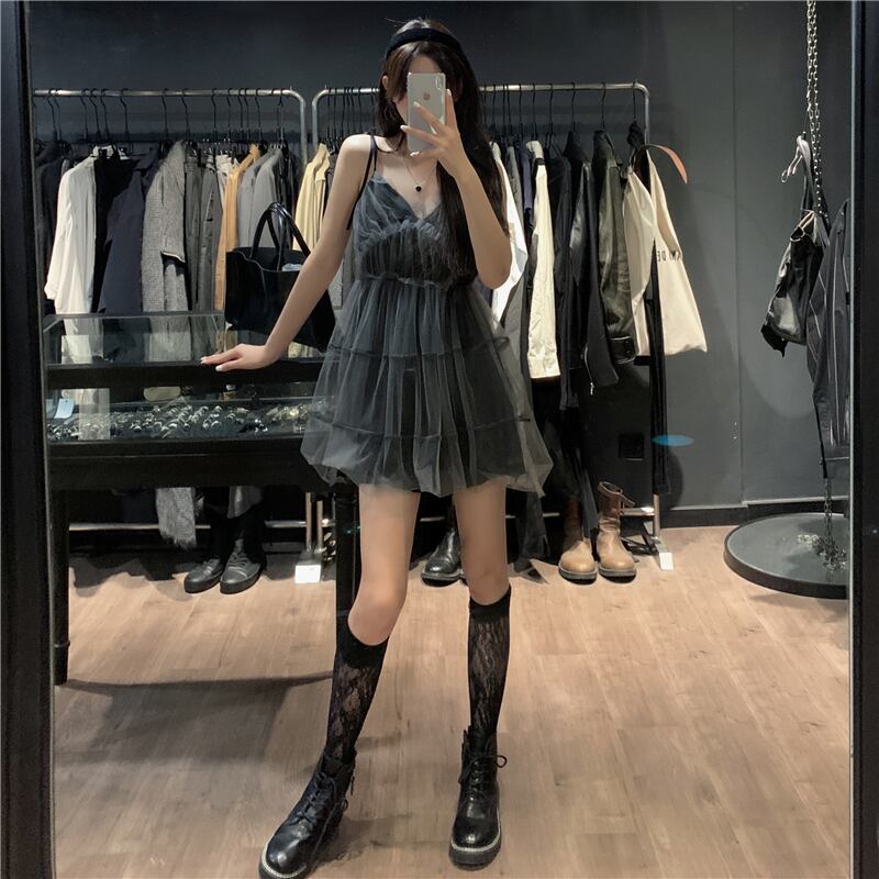 スカート サマースタイルドレス ウェストスリムショートブラック 夏物 1号婦人83272651868
