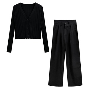 スプリングショートニットカーディガンルーズパンツ 春物 1号婦人71433834321