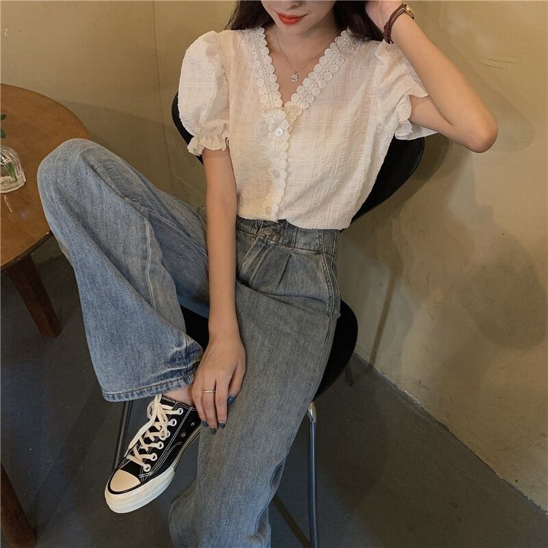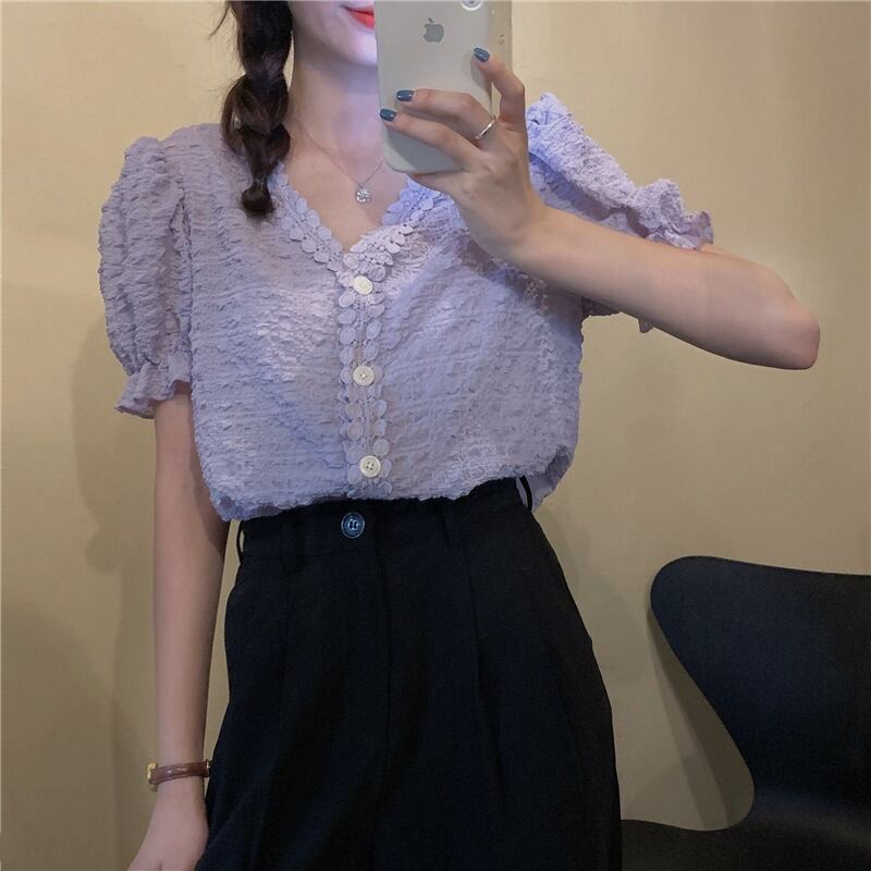 シャツ サマー薄手スリーブスタンダードトップス レトロ 夏物 1号婦人80841078821