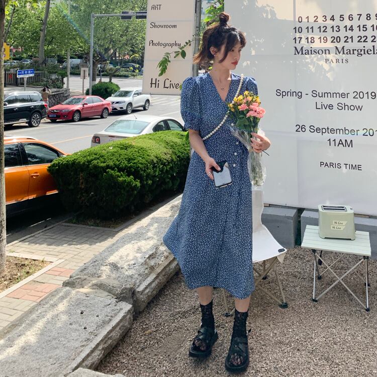フローラルドレス サマー薄手ウェストロング 夏物 花柄 1号婦人75785384856