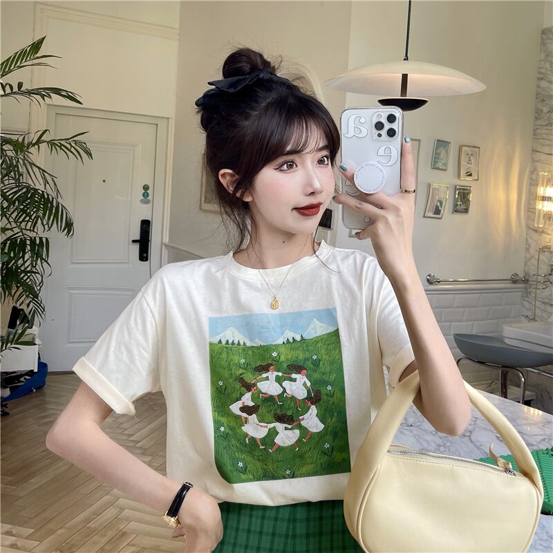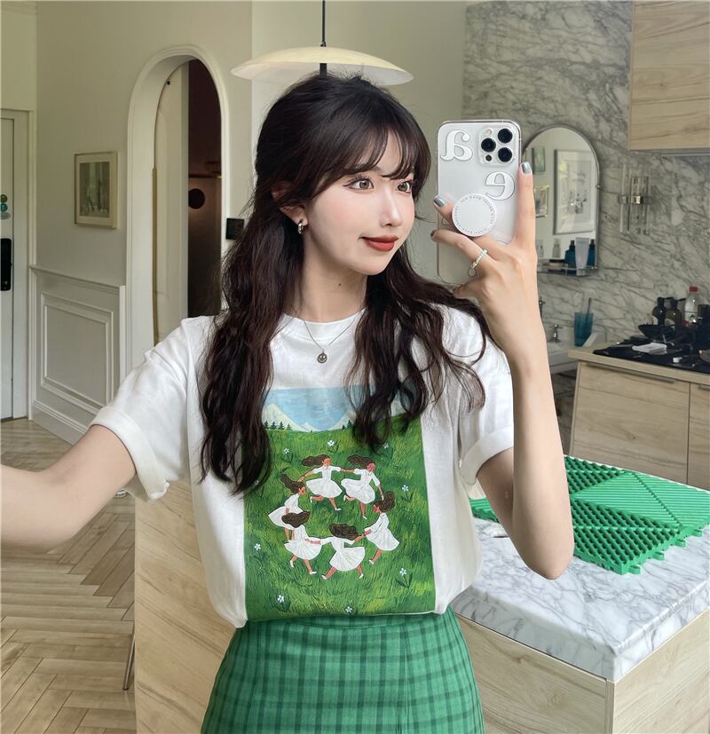 色:白いTシャツ,アプリコットTシャツ,緑のスカート