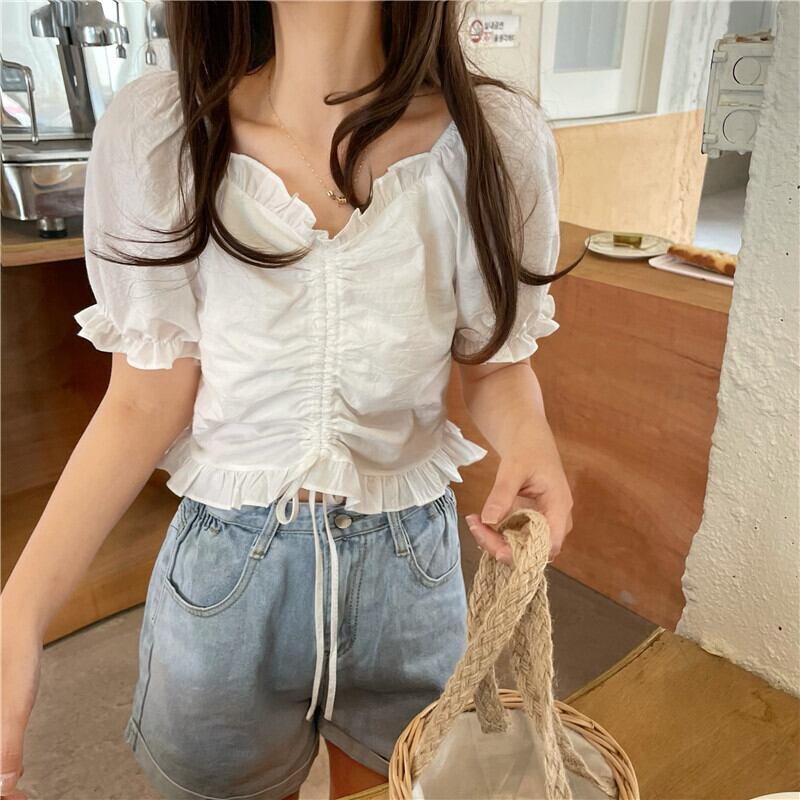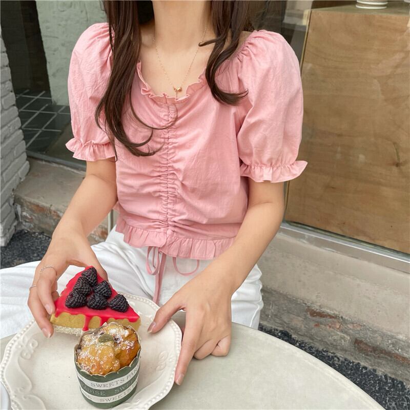 ショートシャツ レディーススプリングサマーギャザートップス 春物 夏物 1号婦人34774441654