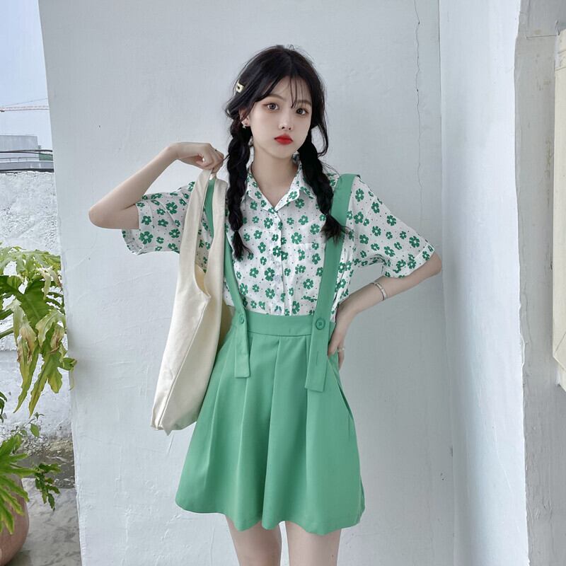 色:黒いシャツ,ブラックストラップドレス,緑のシャツ,グリーンストラップドレス