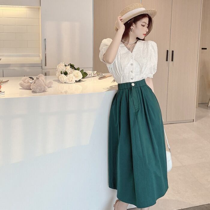 スタイルスタンダードサマースリーブシャツ Aラインスカート レトロ 夏物 1号婦人32689598996