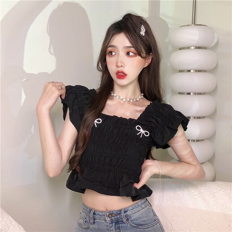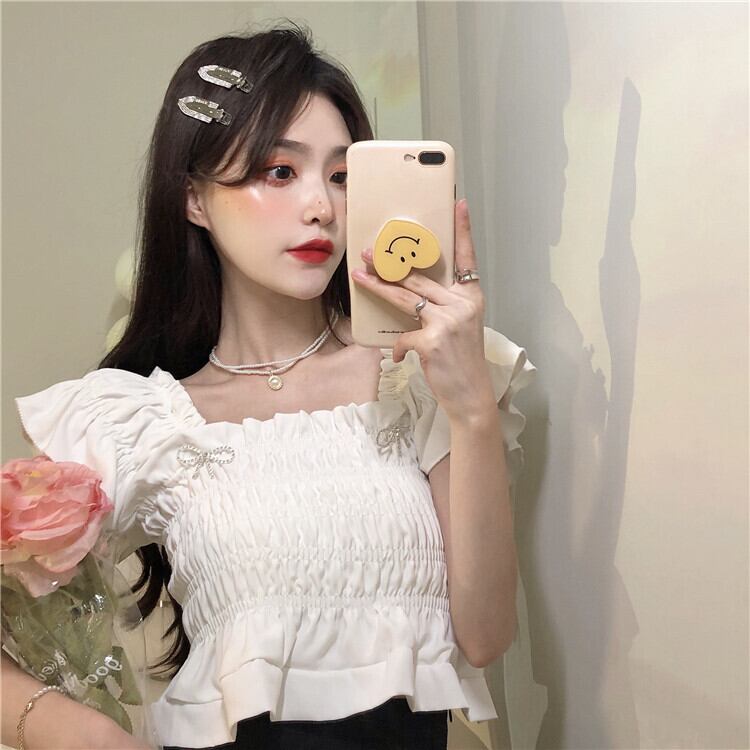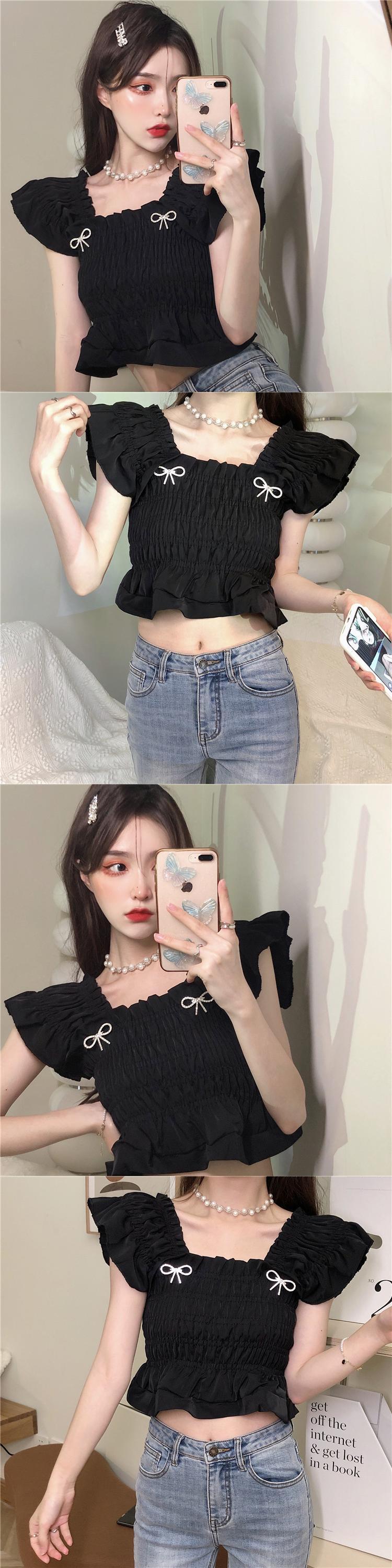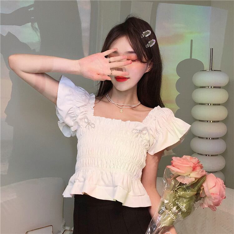 サマー薄手カラーショートシャツ ブラウス 大人ガーリー スウィート キュート カジュアル 夏物 スクウェア 1号婦人61108828552