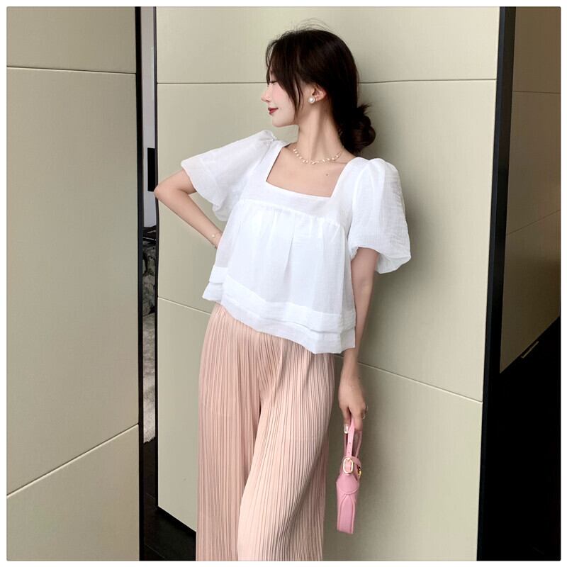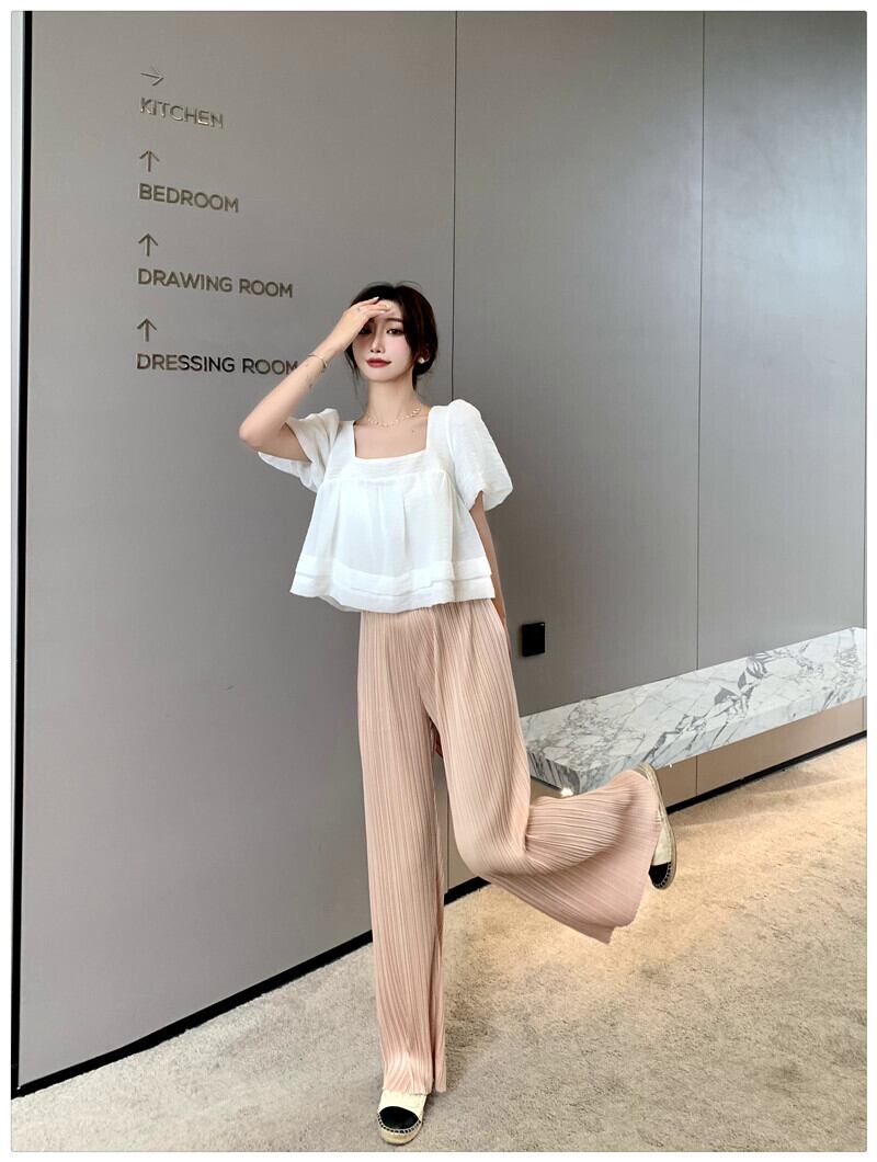 カジュアルサマードレス スリーブシャツ プリーツパンツ 夏物 1号婦人43039790656