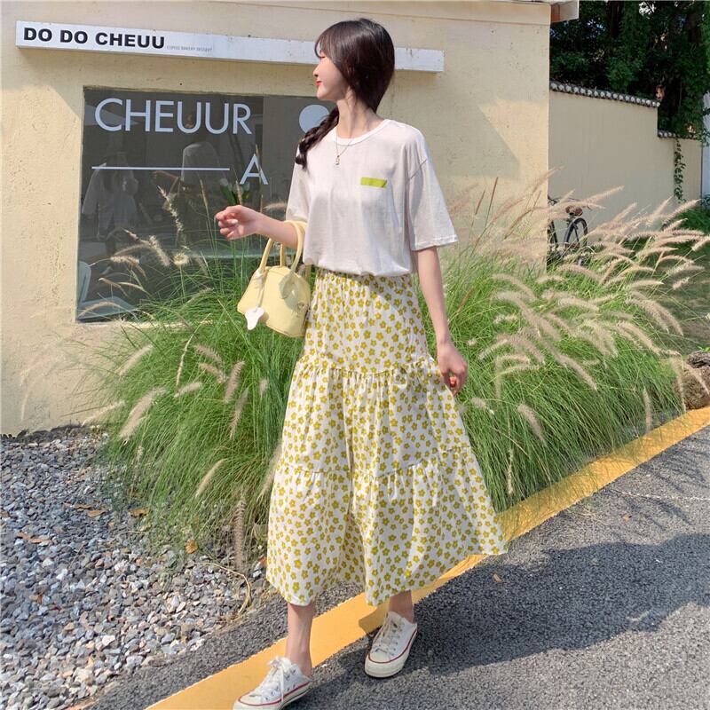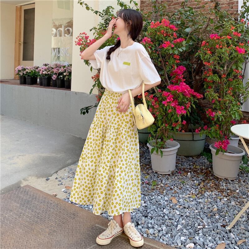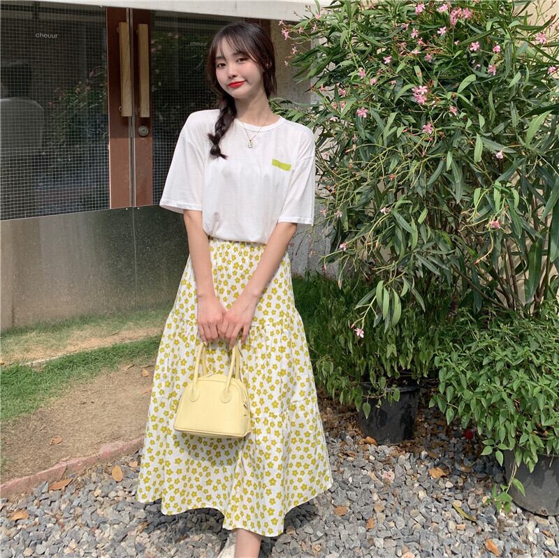 カジュアルサマーTシャツ フローラルスカート 大人ガーリー スウィート キュート 夏物 花柄 1号婦人25759845518