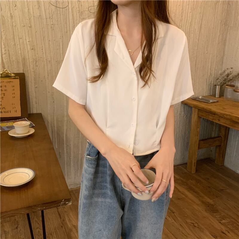 ホワイトシャツ サマー薄手ショート半袖スリーブトップス ハーフスリーブ 夏物 1号婦人92669827325