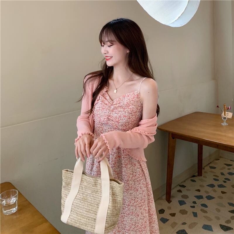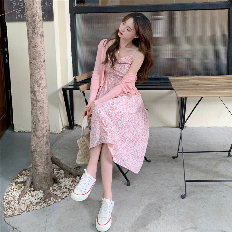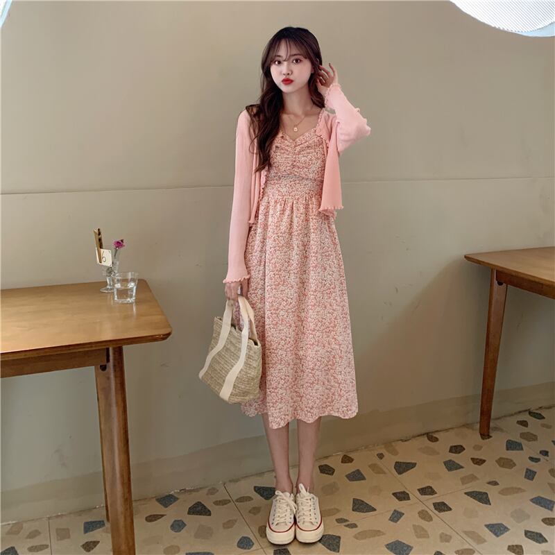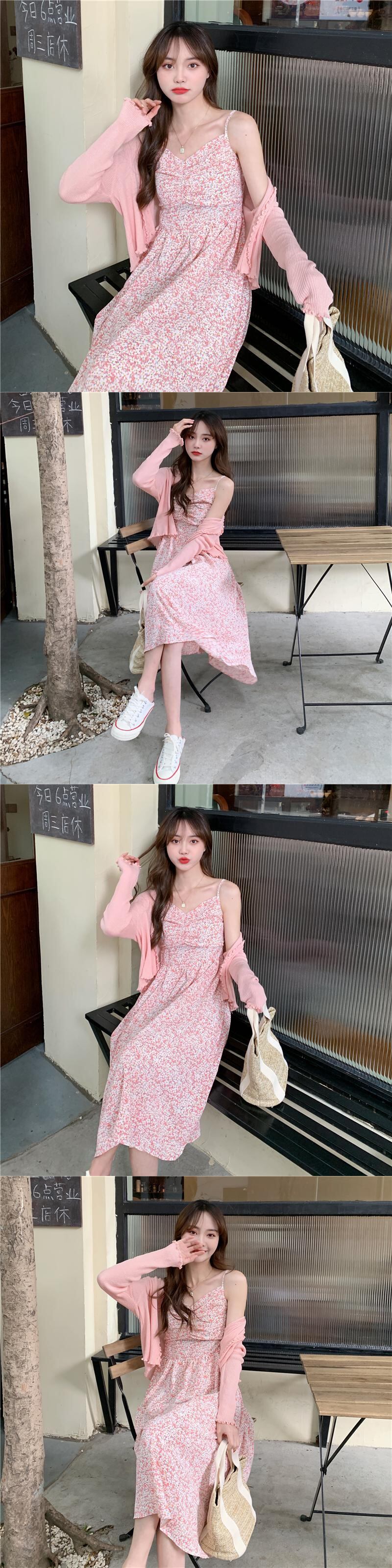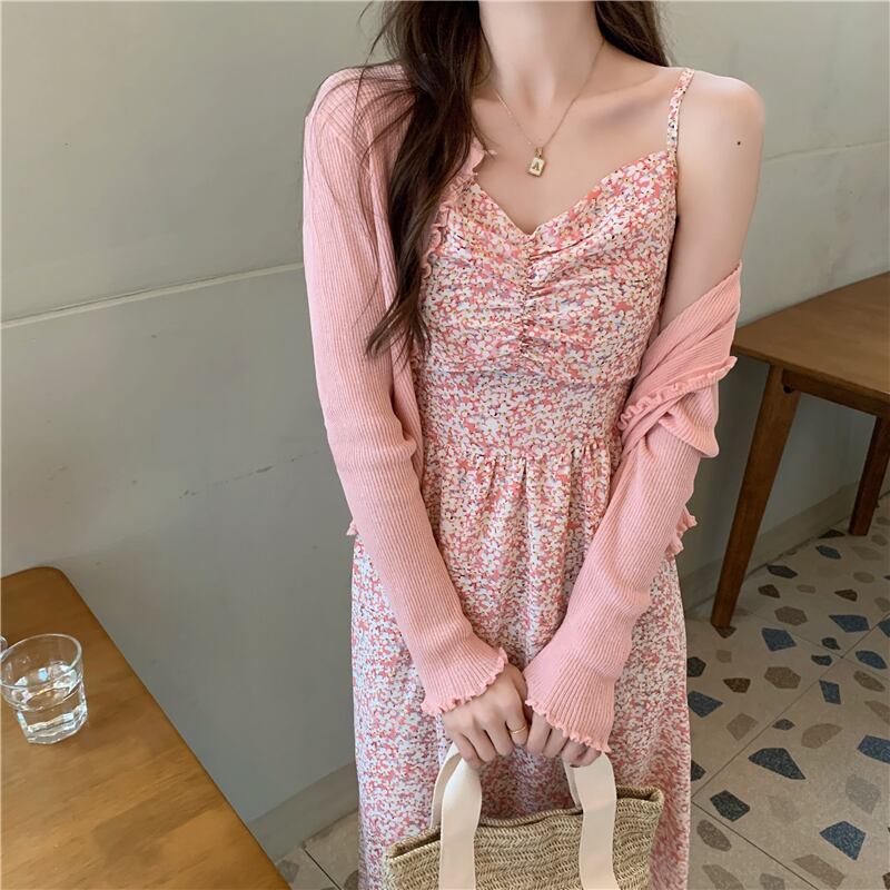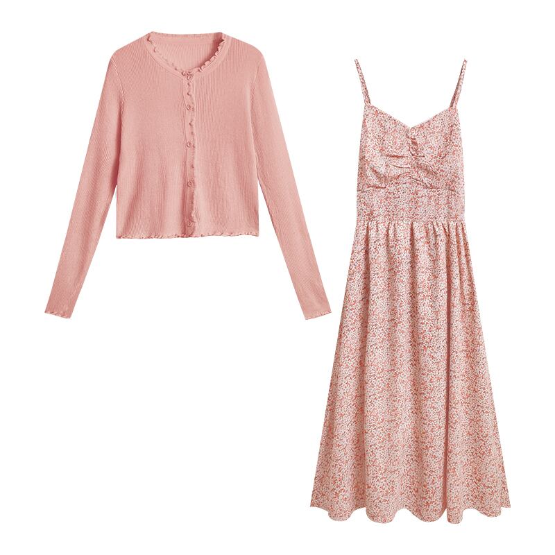 色:青と緑の花柄のスカート,グリーンカーディガン,ピンクのカーディガン,ピンクの花柄スカート