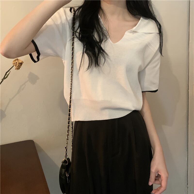 トップス サマーTシャツ 薄手ルーズVネックホワイトショート 半袖 ハーフスリーブ 大人ガーリー スウィート キュート カジュアル 夏物 1号婦人37593927061