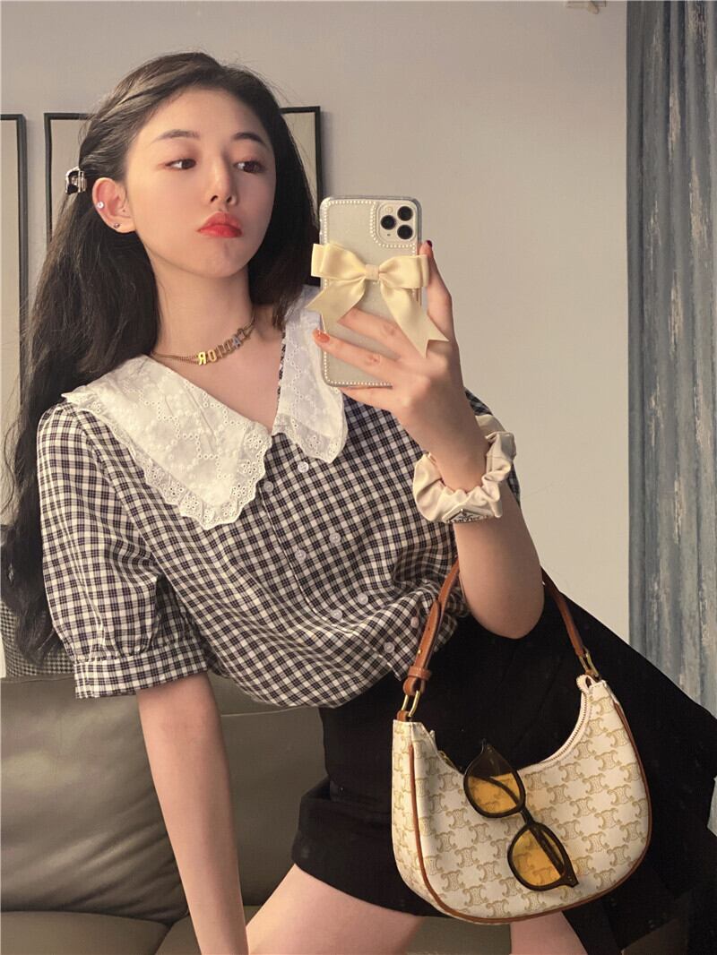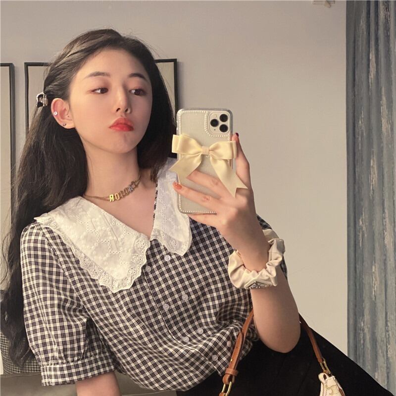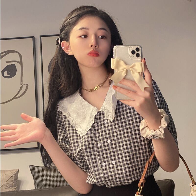 スタンダード格子柄シャツ サマーカラー薄手 レトロ 夏物 1号婦人71103665135