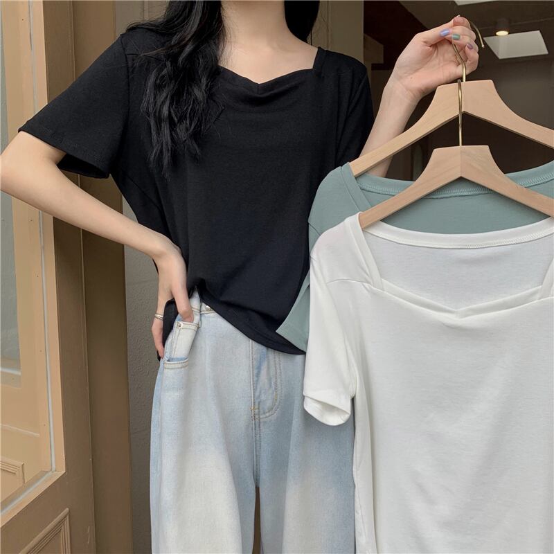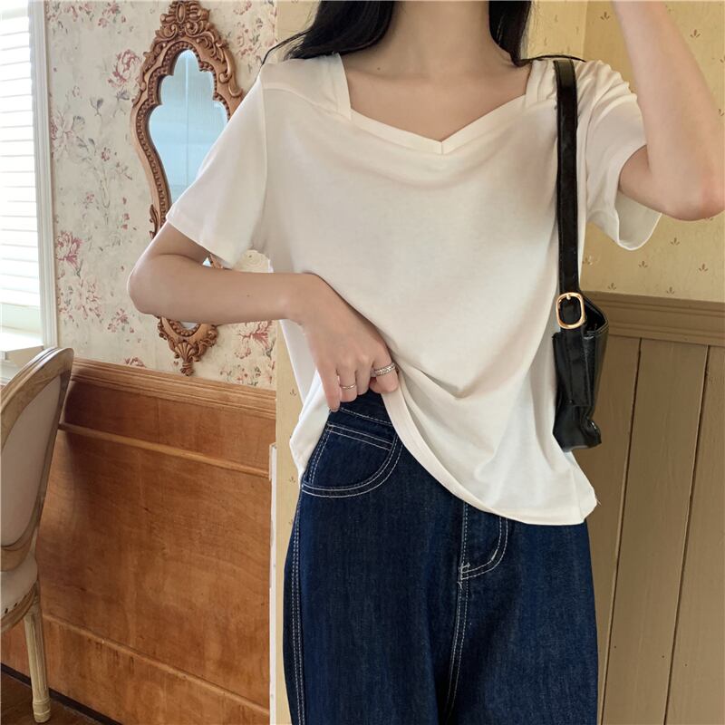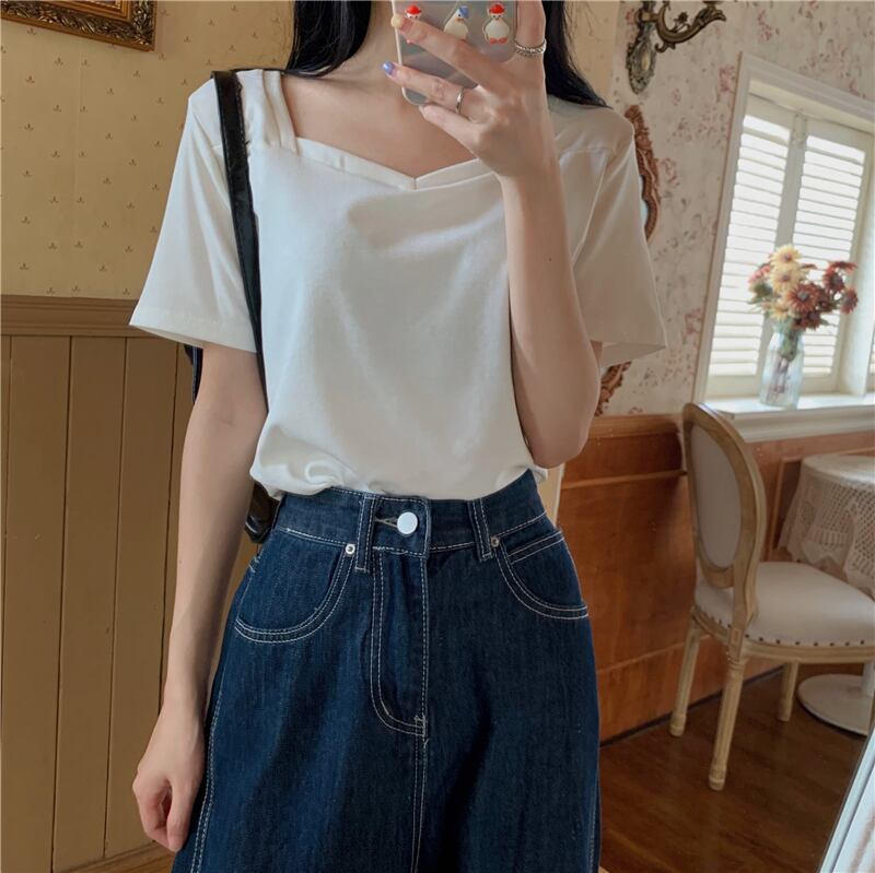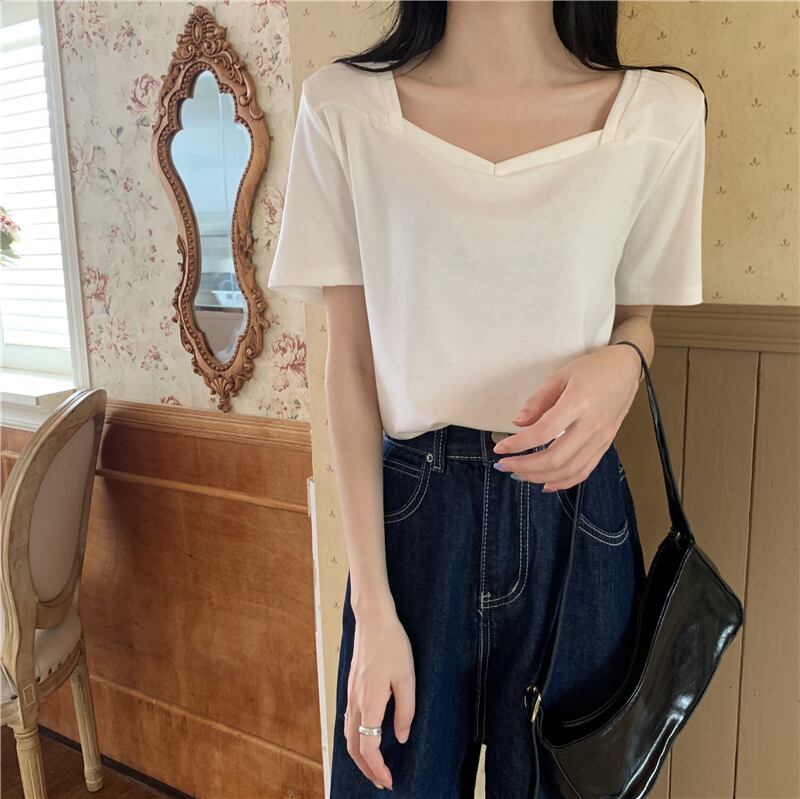 ショートトップス サマーTシャツ 薄手ホワイト 夏物 スクウェア 1号婦人2557085751