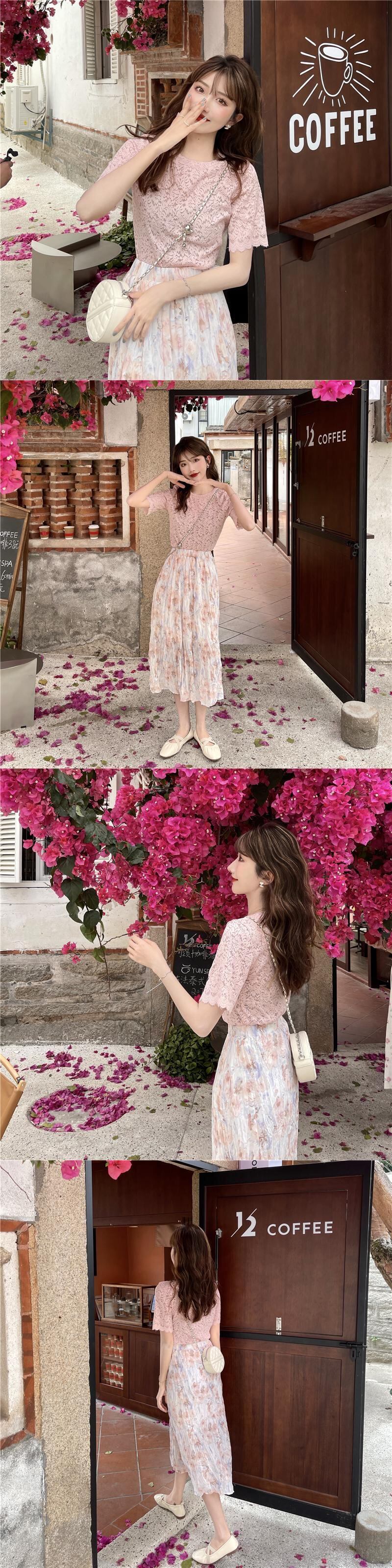 スタイルスタンダードスプリングサマーフローラルスカート レースシャツ レトロ 春物 夏物 花柄 1号婦人94991426901