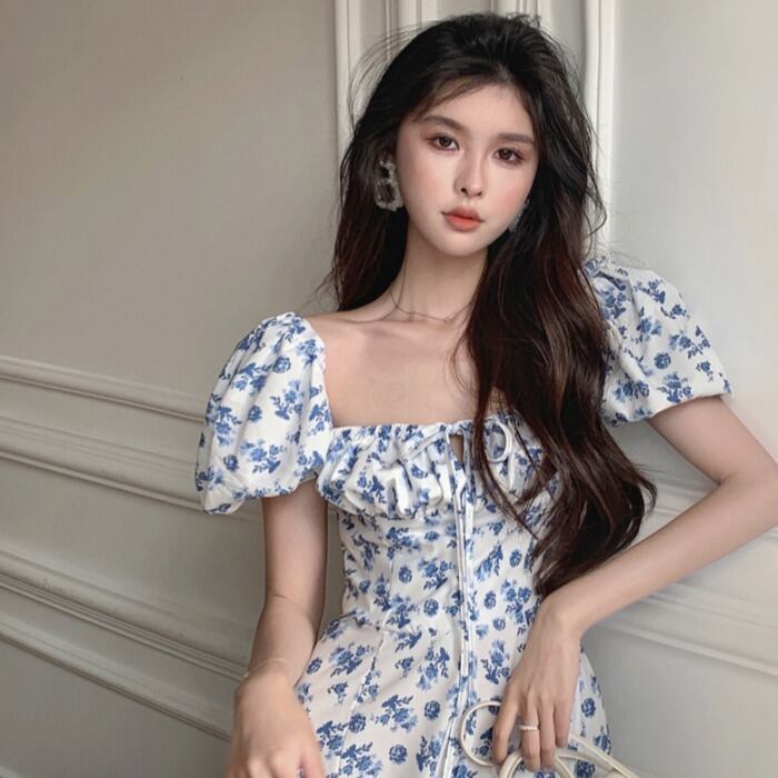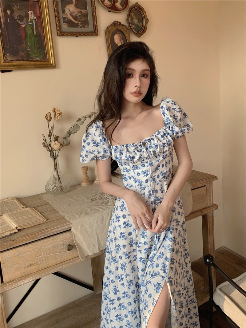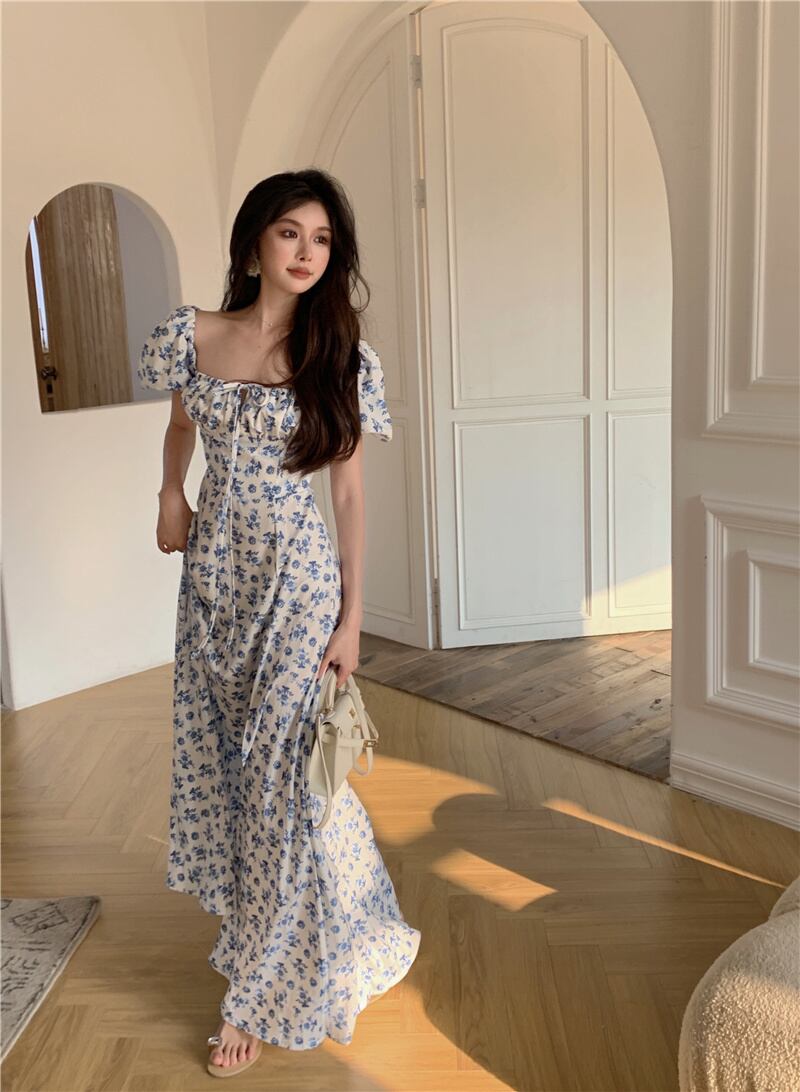 フローラルスカート サマードレス ウェストスリットロング 夏物 花柄 1号婦人59258118735