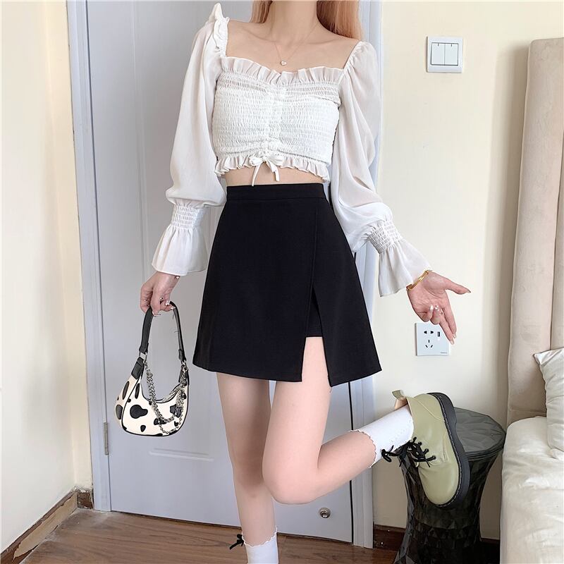 Aラインスカート サマー薄手ハイウェストウェストブラックショート 夏物 1号婦人88067993452