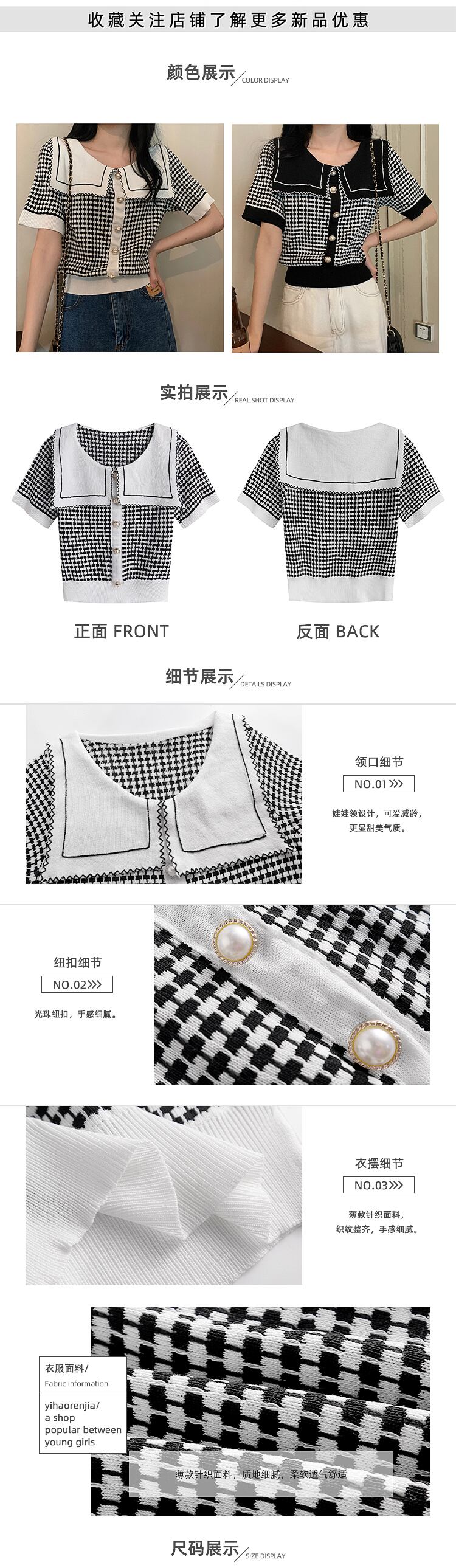 格子柄ショートセーター レディースサマー薄手ネイビーカラートップス 夏物 1号婦人83527130824